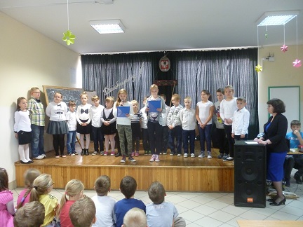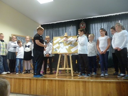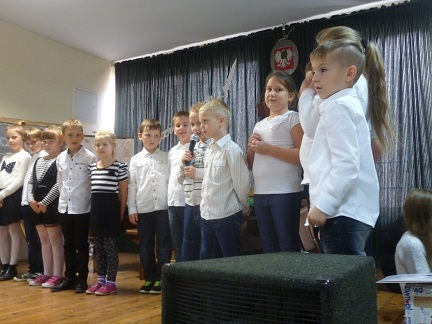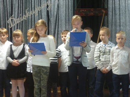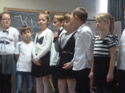 Dzieci z klasy II a wraz z wychowawczynią panią Elżbietą Mizerkiewicz przygotowały część artystyczną, podczas której recytowały przepiękne wiersze, Nadia Chojnicka zaśpiewała dla nas piosenkę, a chłopcy z klas starszych przedstawili sylwetkę nauczyciela ze Szkoły Podstawowej w Gołuchowie.
