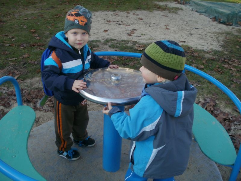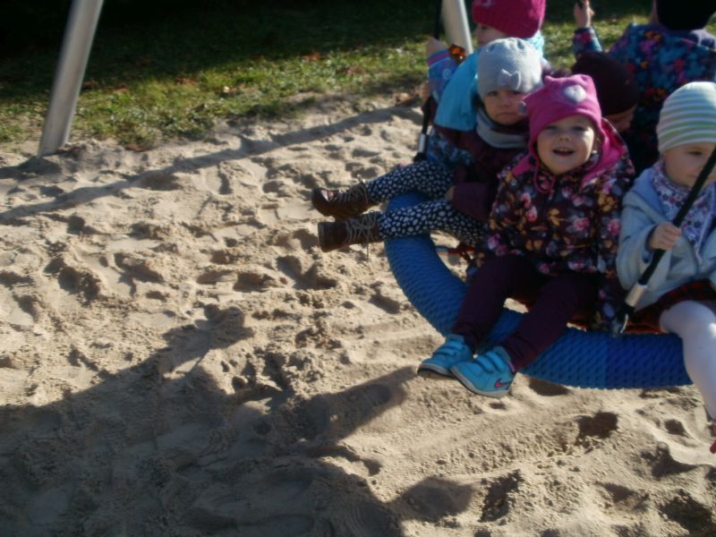 Czy mozna zobaczyć wiatr? Nie, ale jego skutki - tak! Rybki już to wiedzą. Obserwując jesienną aurę zauważyły kołyszące się drzewa i falujące liście. Pomocne okazały się również kolorowe wiatraczki, które pięknie kręciły się na wietrze. W tym dniu słoneczna pogoda sprzyjała dobrej zabawie na świeżym powietrzu.