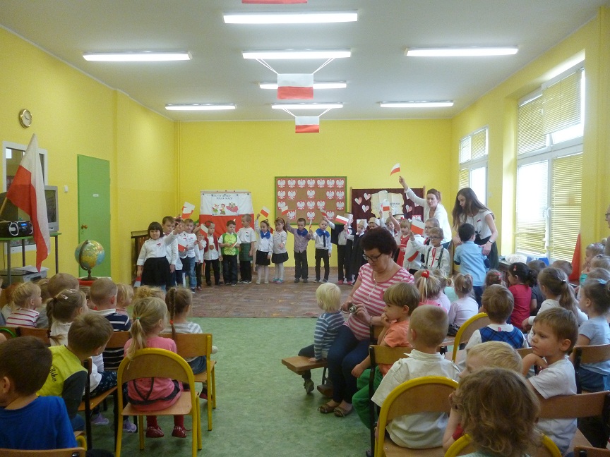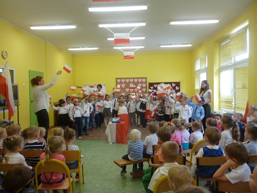 4 listopada dla młodszych przedszkolaków grupy Pszczółki i Biedronki zaprezentowały sie wierszem i piosenką nawiązującą do ukochanej Ojczyzny - Polski. Z dużym skupieniem młodsi koledzy i koleżanki wsłuchiwały się w nasze słowa.Zobaczcie sami .