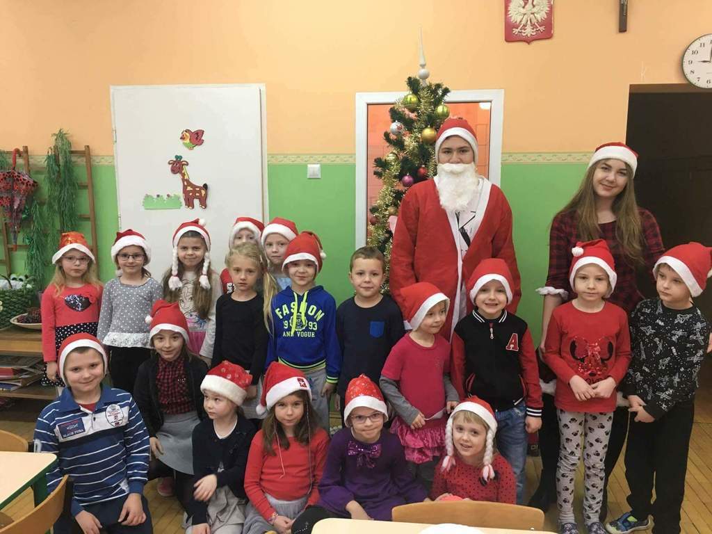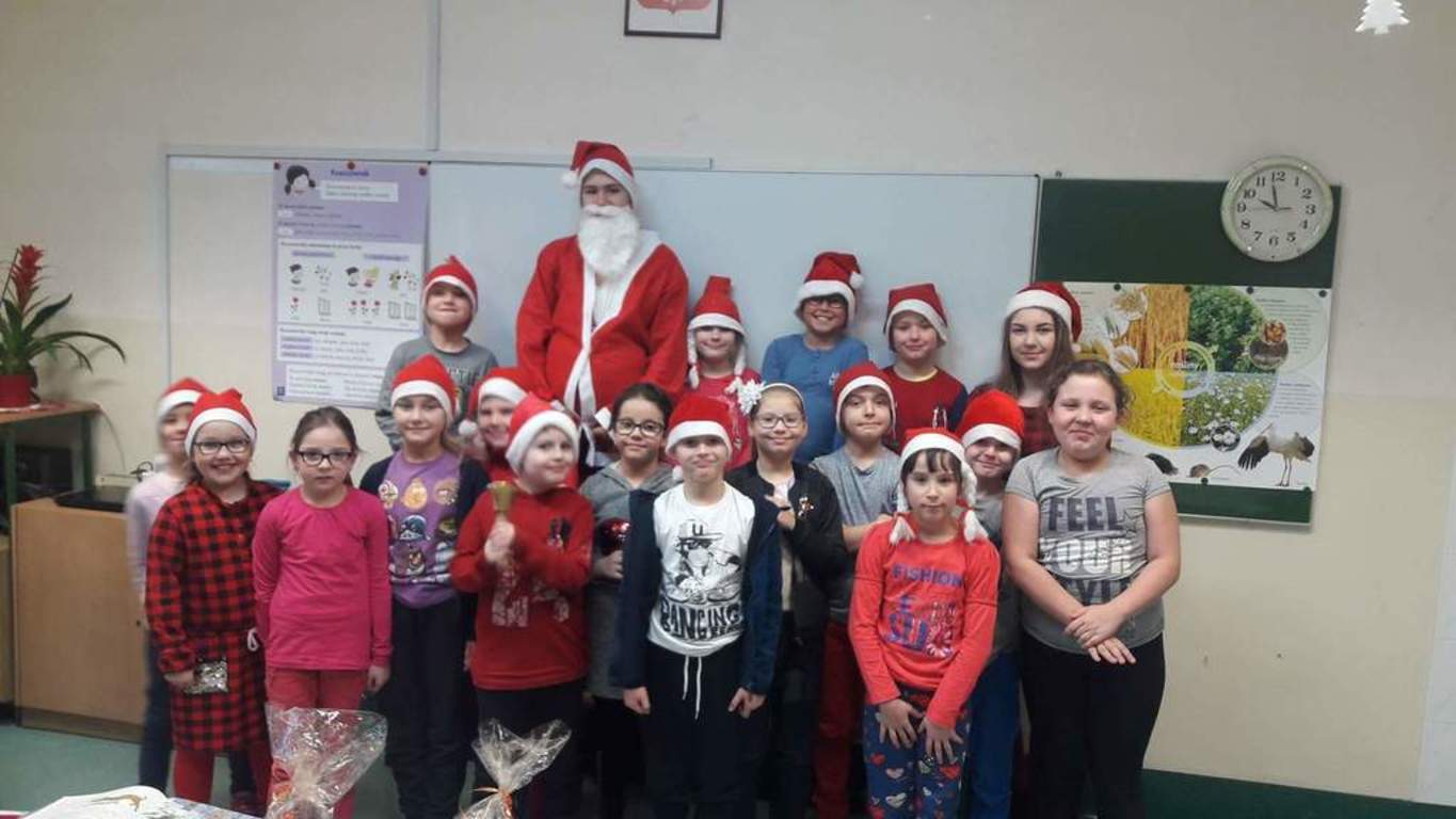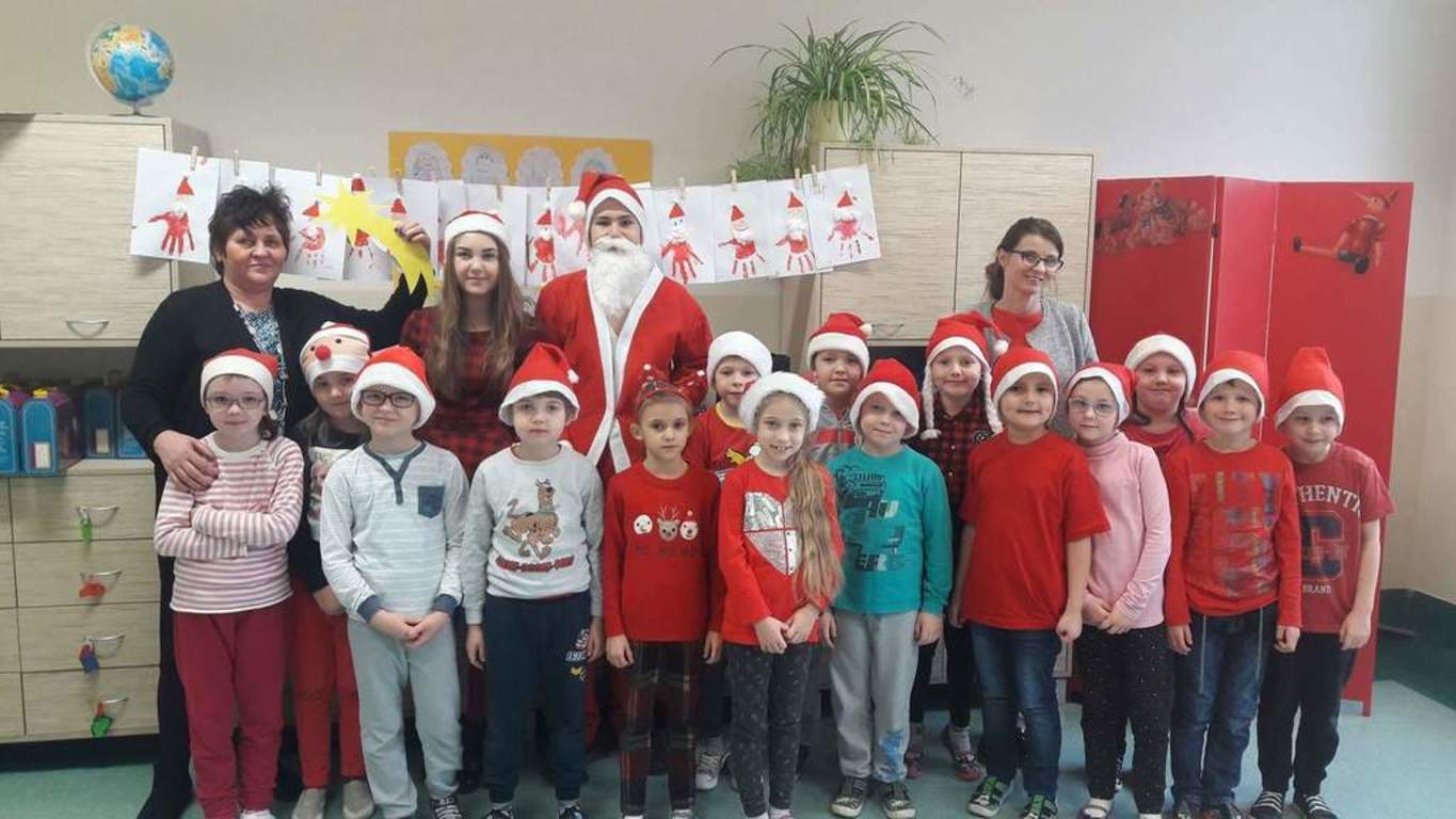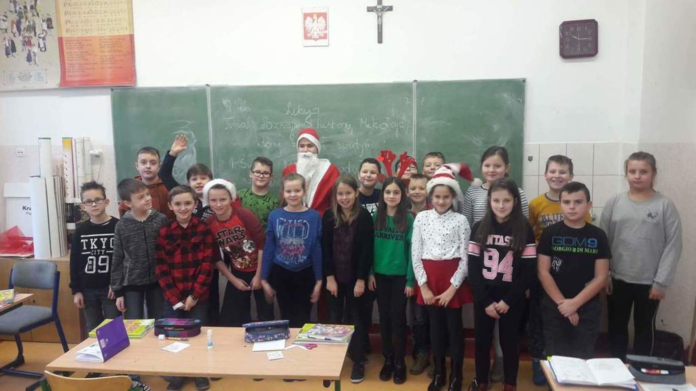Święty Mikołaj i jego pomocnica odwiedzili i nas. Dzieci oraz młodzież byli bardzo zadowoleni. Słysząc dzwonek Świętego nie mogli się doczekać, aż zapuka do ich drzwi. Szczęśliwi także byli nasi Nauczyciele oraz pracownicy szkoły, nie spodziewali się, że Mikołaj ma też coś dla nich. Z okazji Mikołajek samorząd szkolny życzył wszystkiego co najlepsze, a symbolicznym gestem osłodził wszystkim ten dzień.