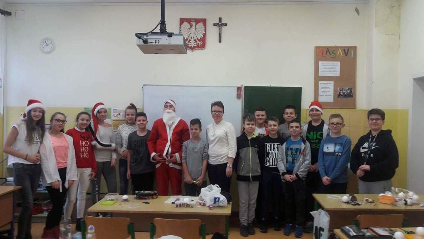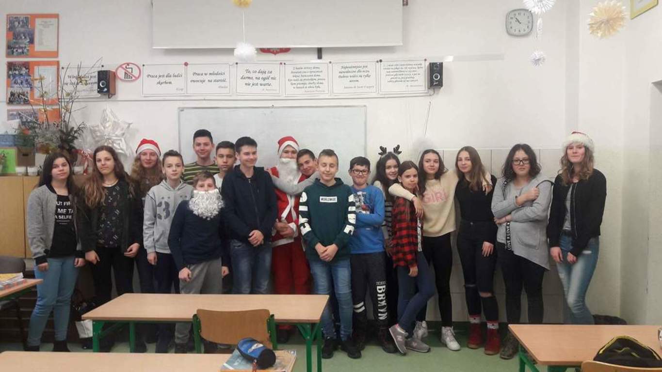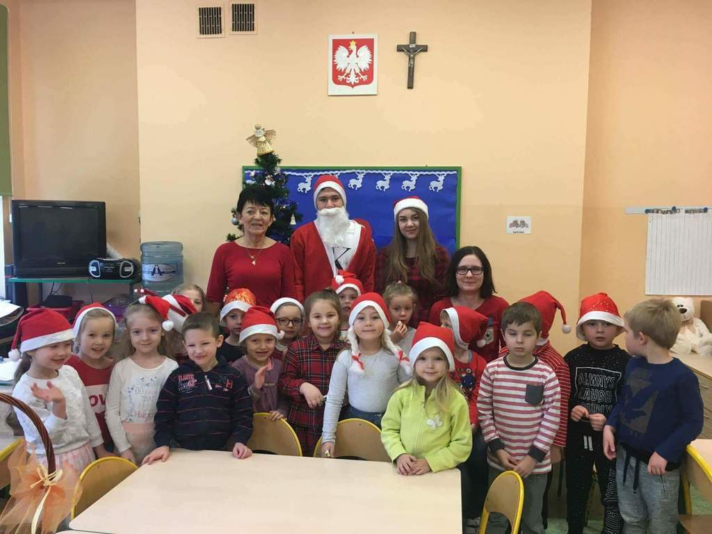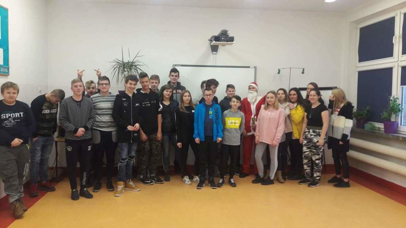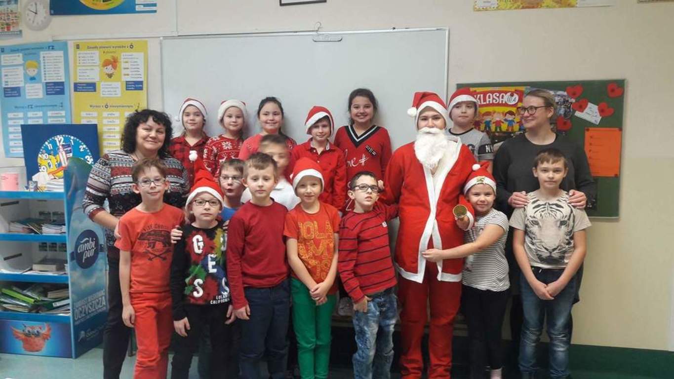 Święty Mikołaj i jego pomocnica odwiedzili i nas. Dzieci oraz młodzież byli bardzo zadowoleni. Słysząc dzwonek Świętego nie mogli się doczekać, aż zapuka do ich drzwi. Szczęśliwi także byli nasi Nauczyciele oraz pracownicy szkoły, nie spodziewali się, że Mikołaj ma też coś dla nich. Z okazji Mikołajek samorząd szkolny życzył wszystkiego co najlepsze, a symbolicznym gestem osłodził wszystkim ten dzień.