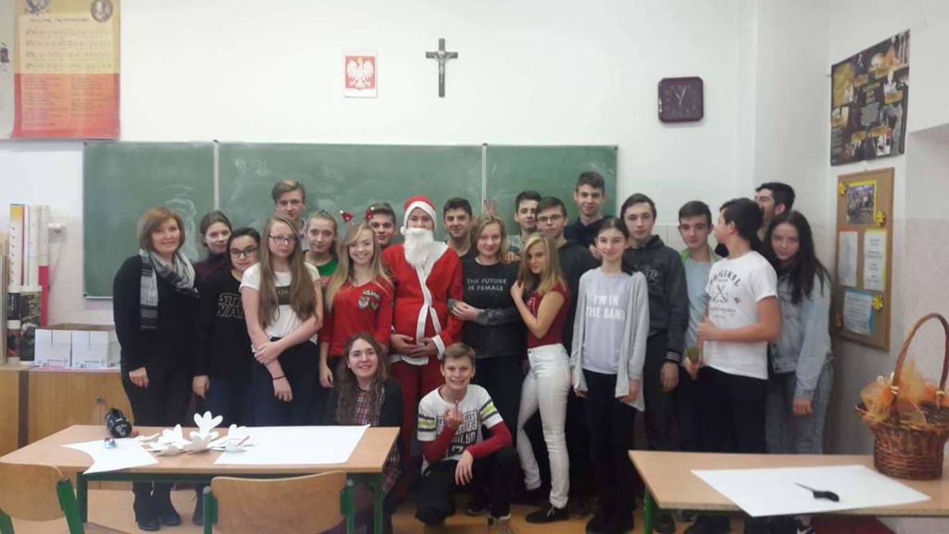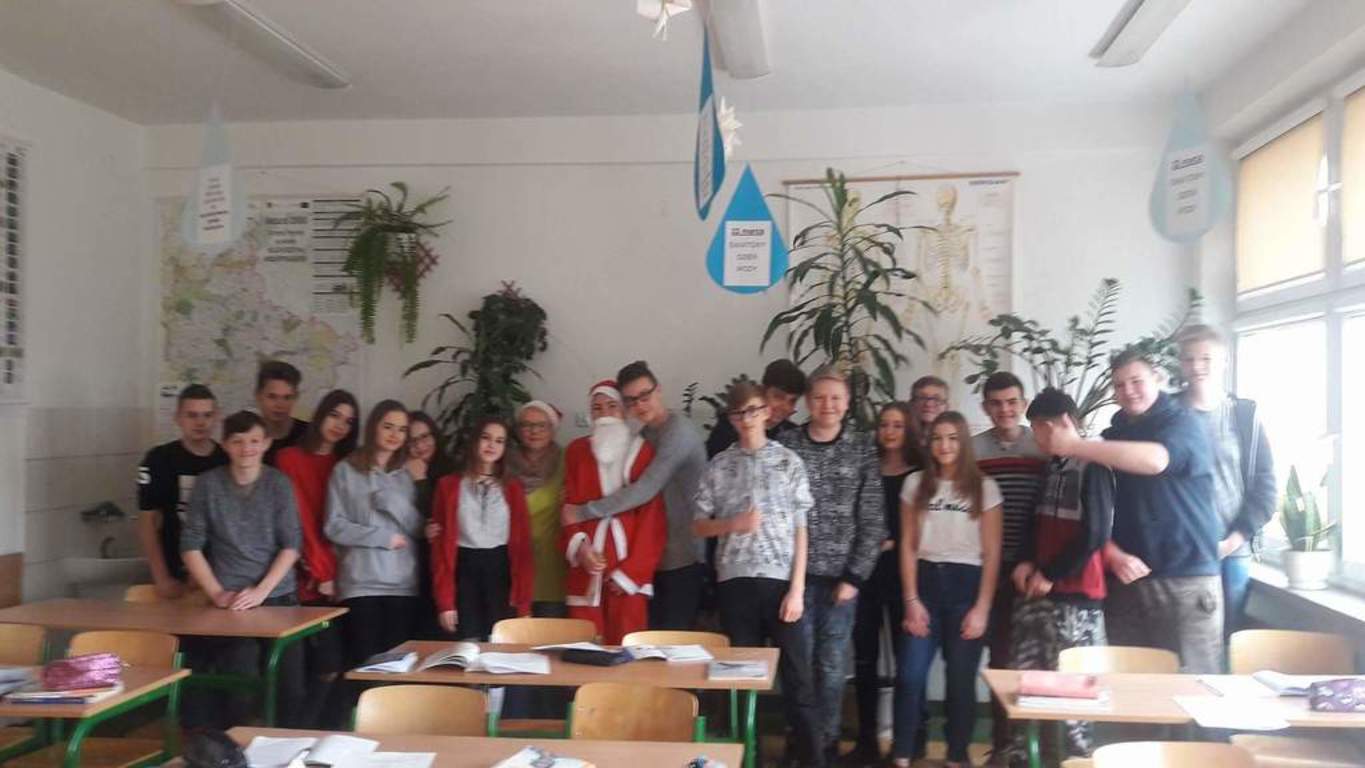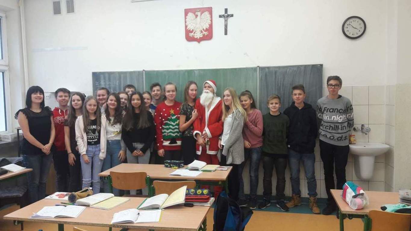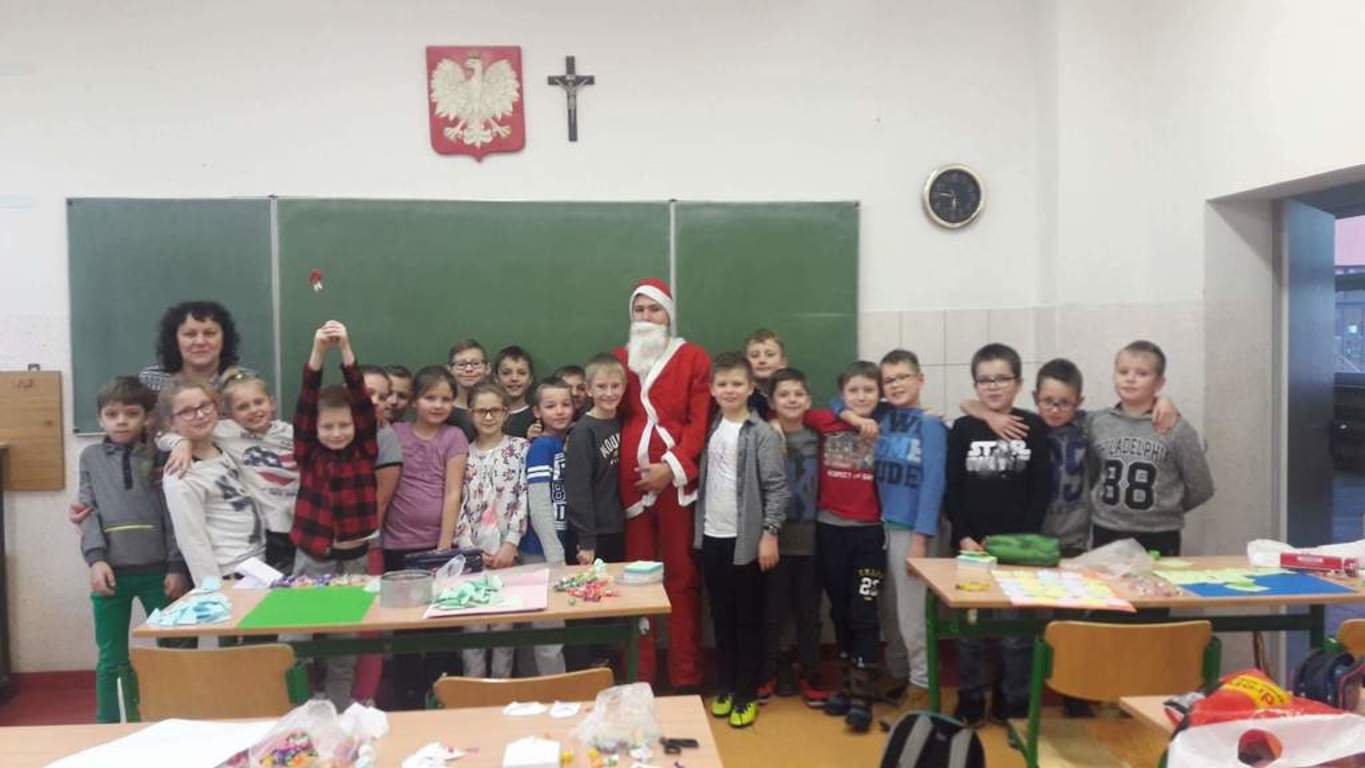 Święty Mikołaj i jego pomocnica odwiedzili i nas. Dzieci oraz młodzież byli bardzo zadowoleni. Słysząc dzwonek Świętego nie mogli się doczekać, aż zapuka do ich drzwi. Szczęśliwi także byli nasi Nauczyciele oraz pracownicy szkoły, nie spodziewali się, że Mikołaj ma też coś dla nich. Z okazji Mikołajek samorząd szkolny życzył wszystkiego co najlepsze, a symbolicznym gestem osłodził wszystkim ten dzień.