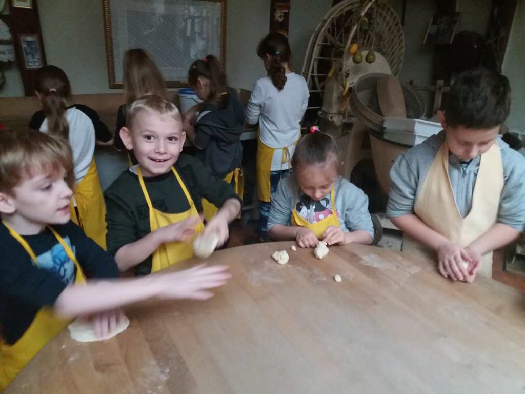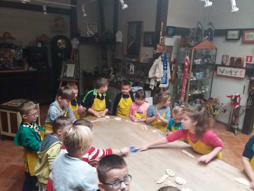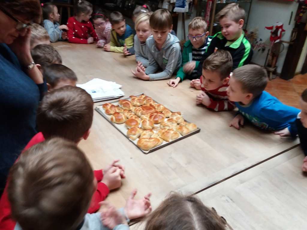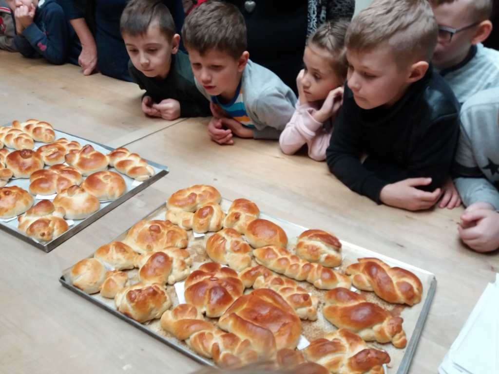 12 grudnia klasy Ia, Ib oraz II uczestniczyły w warsztatach w piekarni Vogt w Pleszewie. Dzieci mogły usłyszeć historię rodziny właściciela piekarni, obejrzały przyrządy kuchenne używane dawniej i dziś. Nastepnie samodzielnie mogły wykonać bułeczki. Uczniowie tworzyli przeróżne kształty. Były ślimaczki, kwiatki, precelki, warkocze...