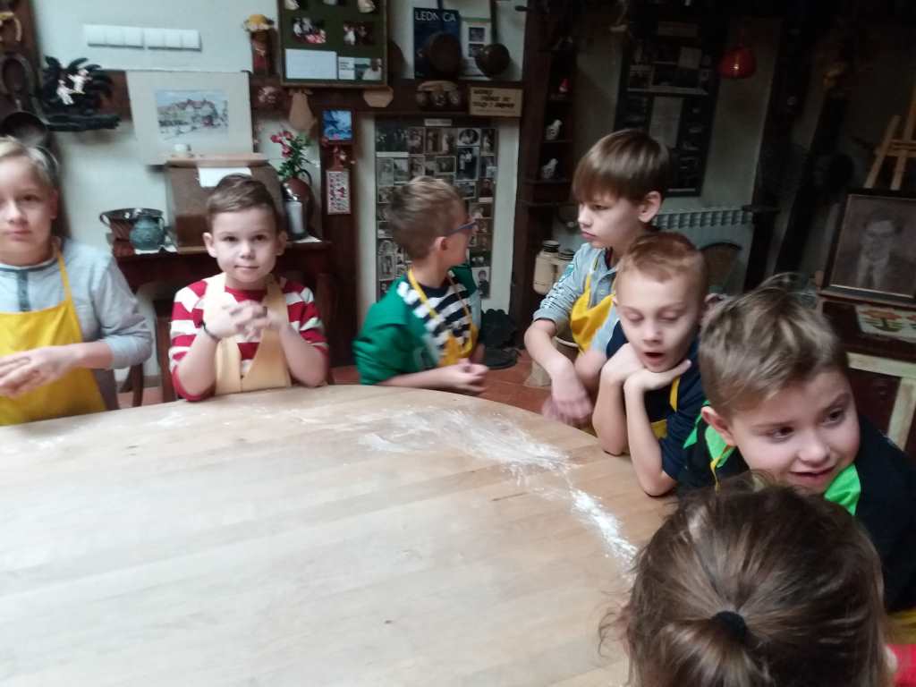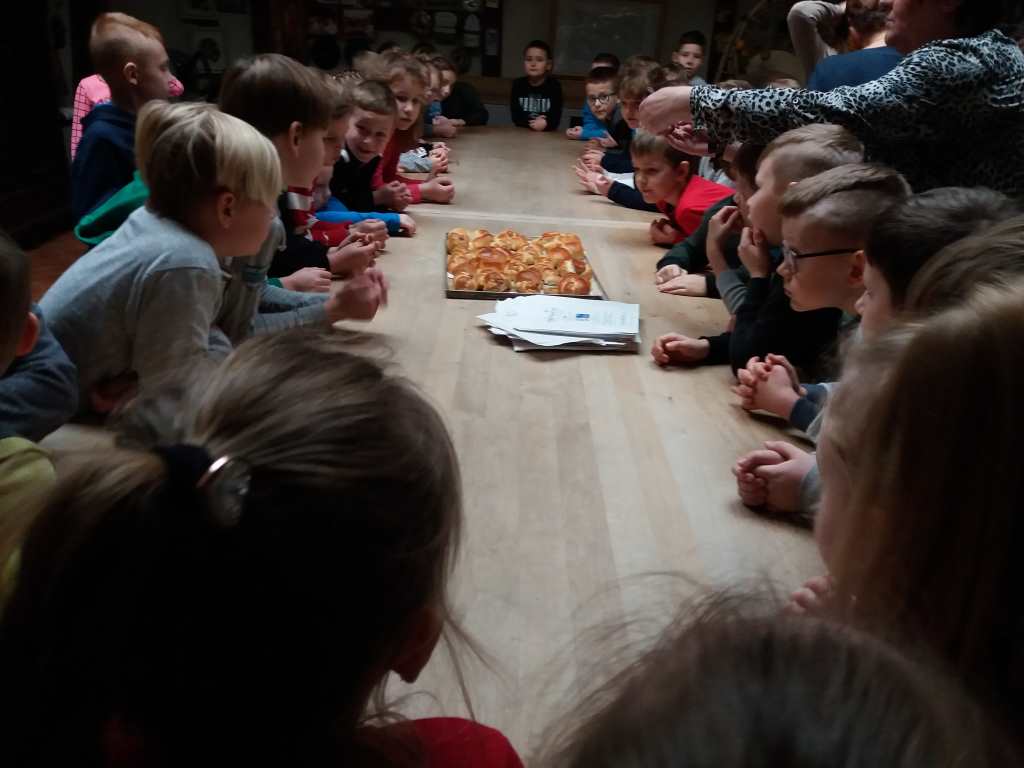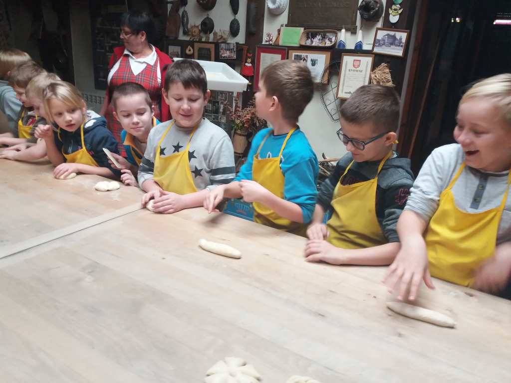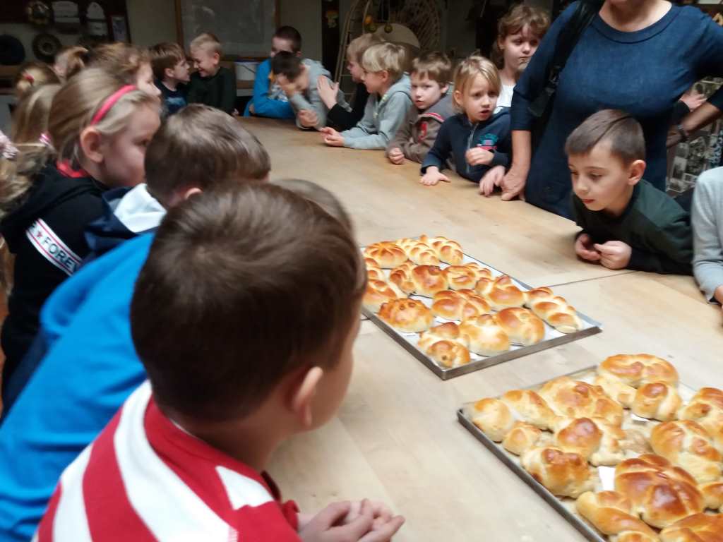12 grudnia klasy Ia, Ib oraz II uczestniczyły w warsztatach w piekarni Vogt w Pleszewie. Dzieci mogły usłyszeć historię rodziny właściciela piekarni, obejrzały przyrządy kuchenne używane dawniej i dziś. Nastepnie samodzielnie mogły wykonać bułeczki. Uczniowie tworzyli przeróżne kształty. Były ślimaczki, kwiatki, precelki, warkocze...