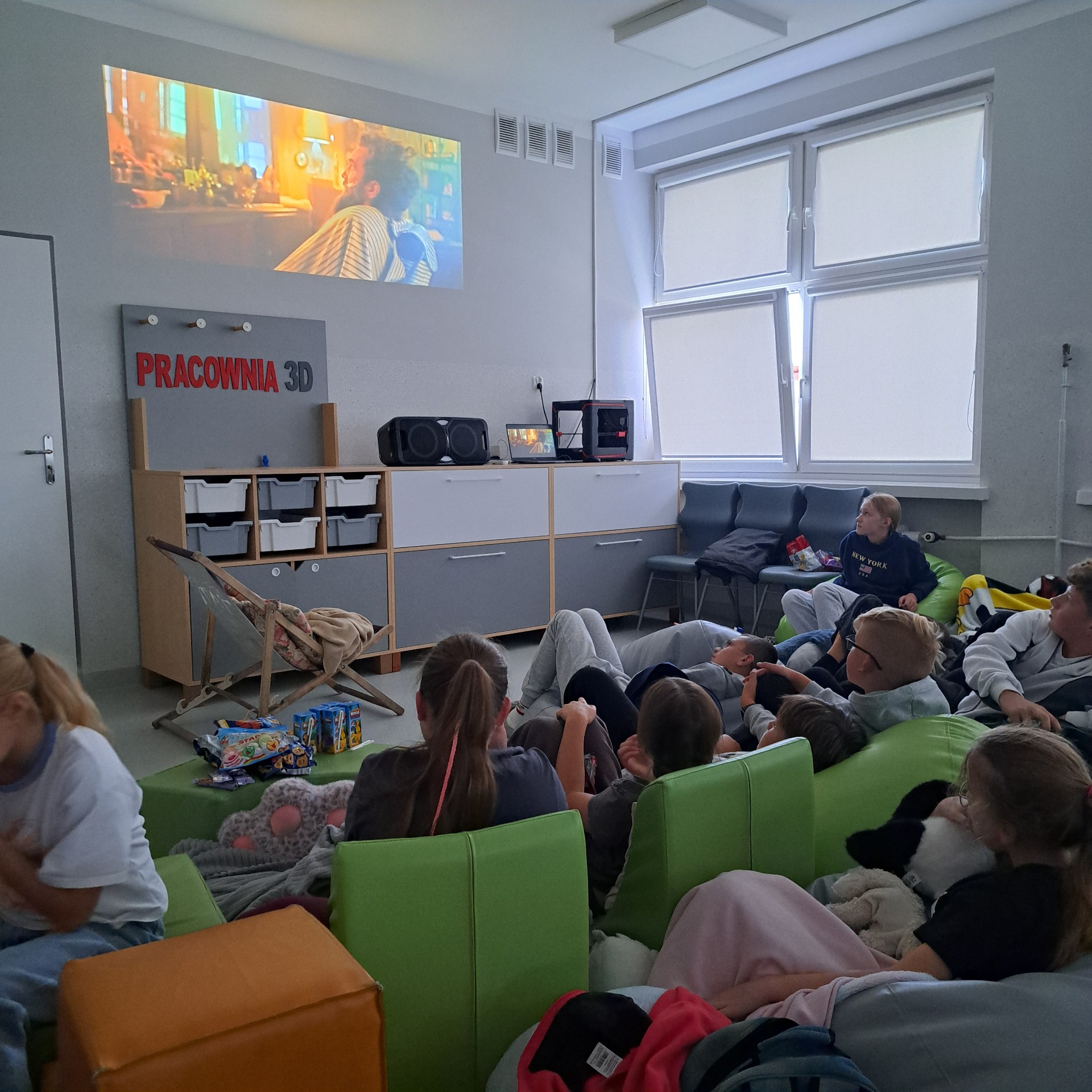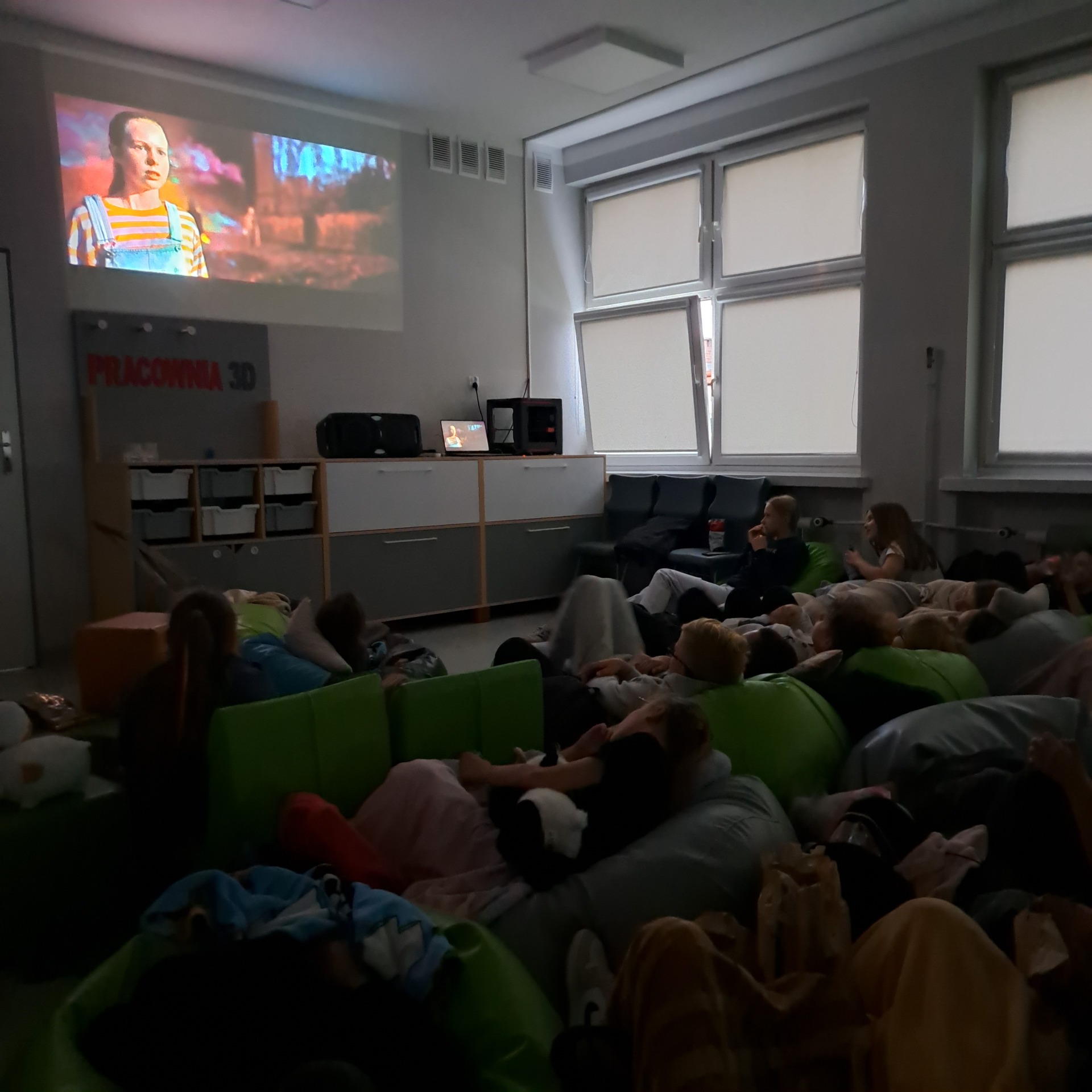Wydarzenia te poprzedziło popołudnie fimowe zorganizowane w piątek (26 września) przez klasę 7b i samorząd uczniowski dla uczniów klas 4-8. Film, który wspólnie obejrzeliśmy to "Wynalazek Filipa Golarza" gdzie poruszone były niezwykle ważne kwestie nowoczesnej technologii oraz jej wpływu na świat i dziecięcą fantazję.