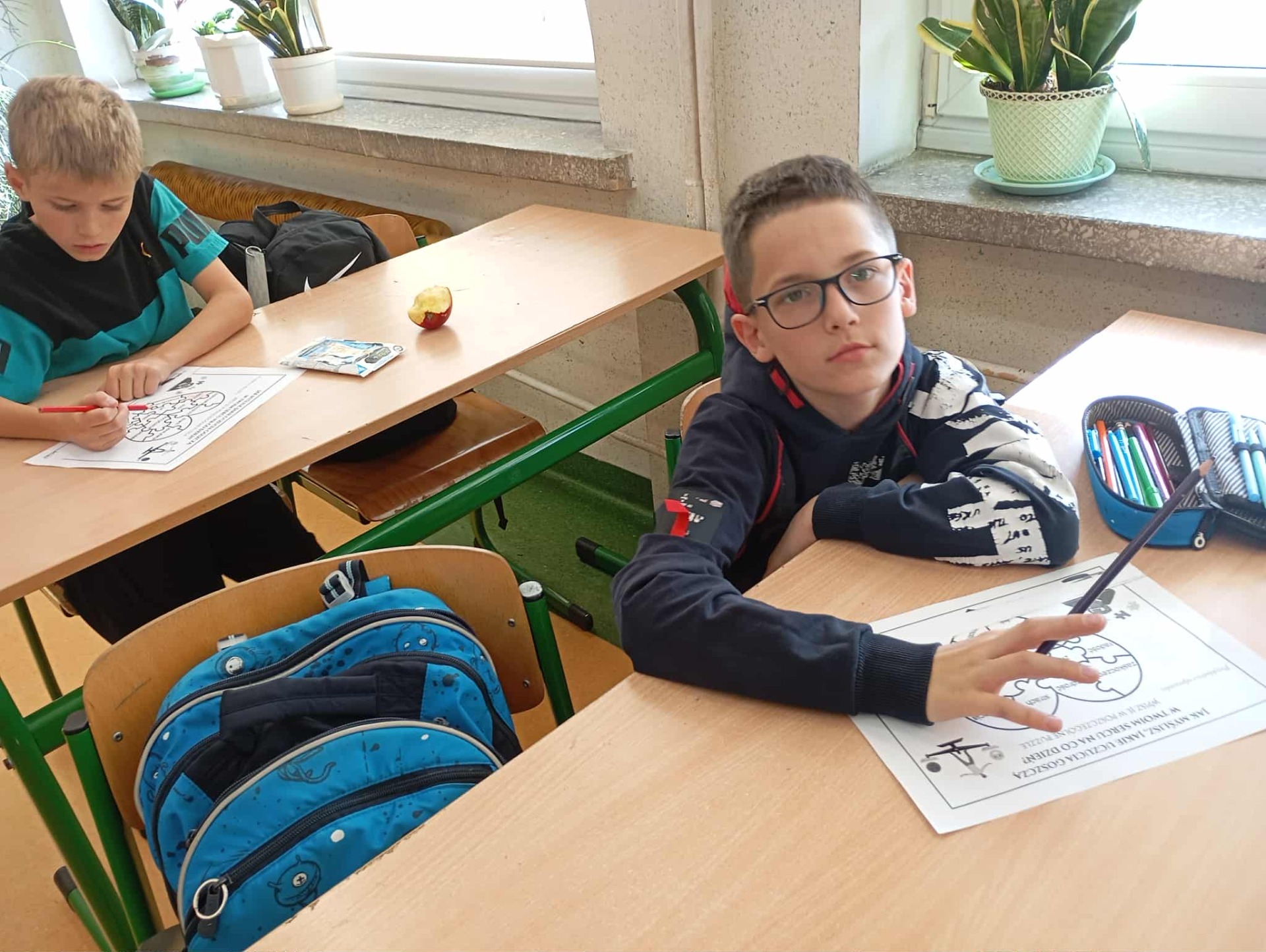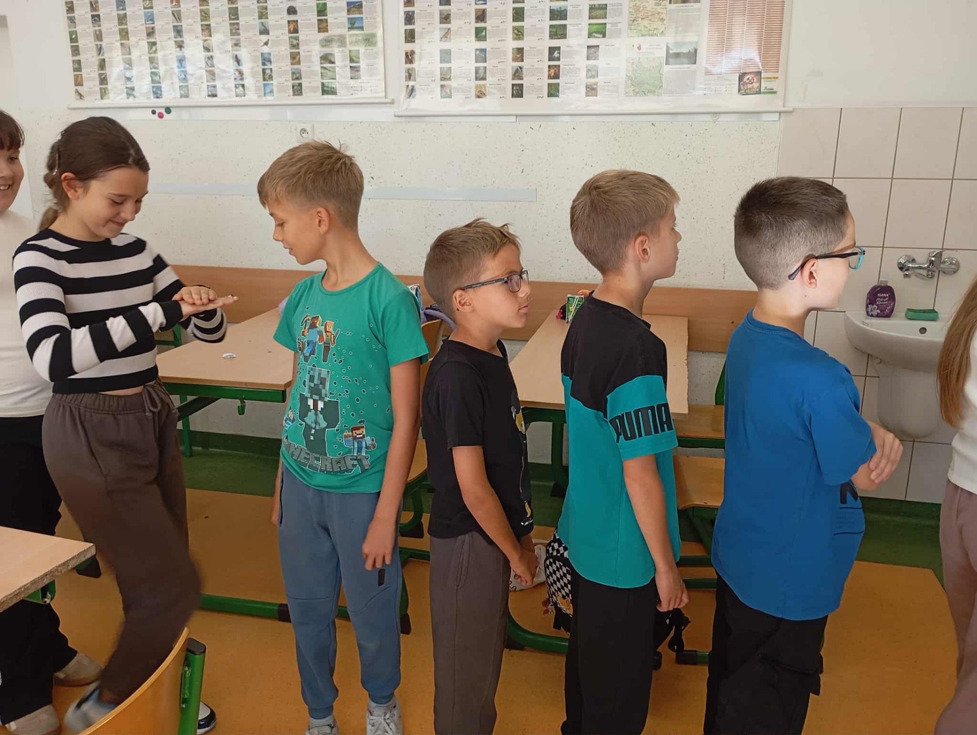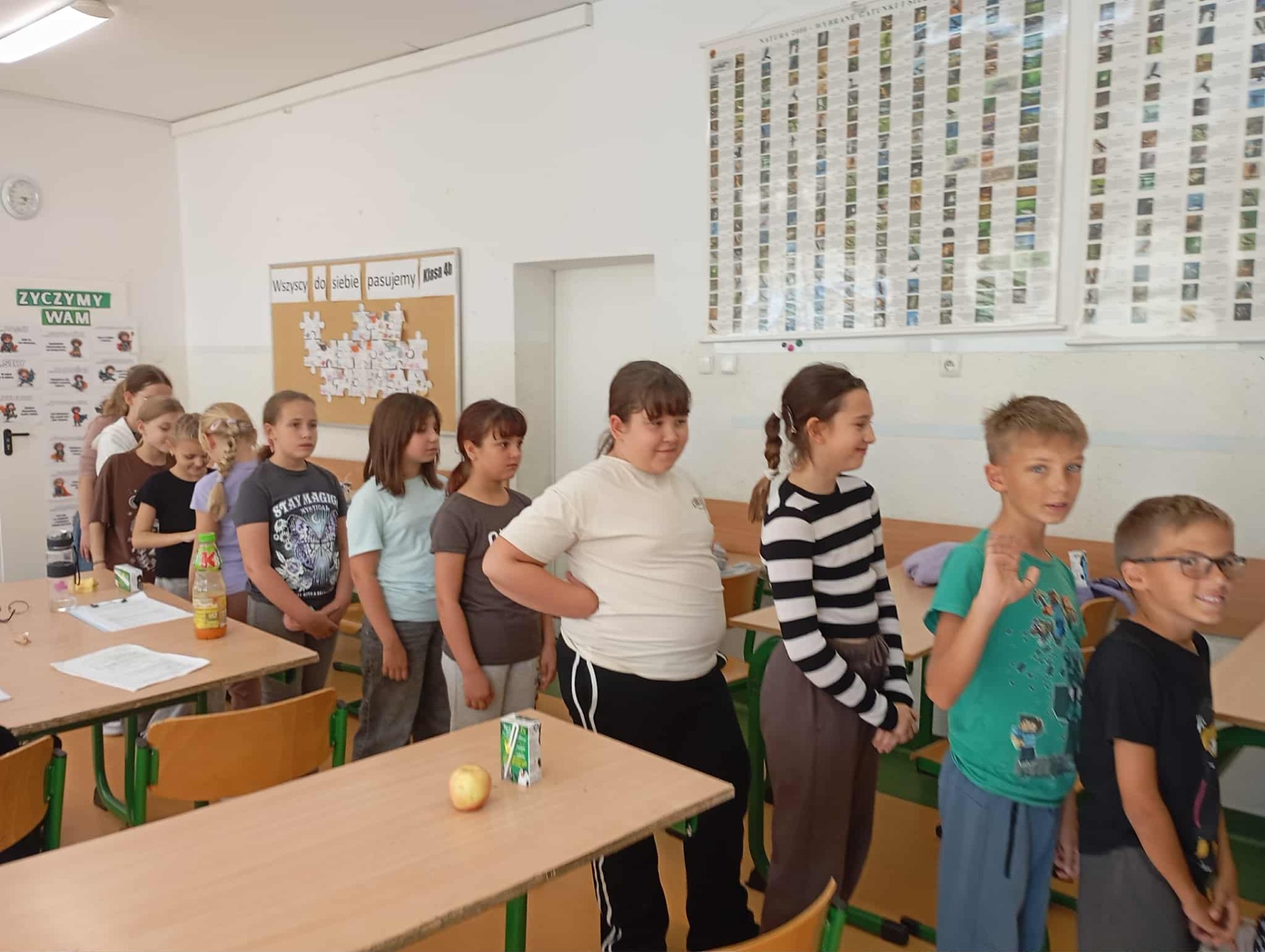 Podczas godziny wychowawczej uczniowie klasy 4b brali udział w zabawie jak powstaje plotka (zdjęcia nie są w stanie tego pokazać). Przeprowadzono eksperyment czy człowiek traci swoją wartość przez to jak wygląda. Przeprowadzona została pogadanka o empatii i szacunku.