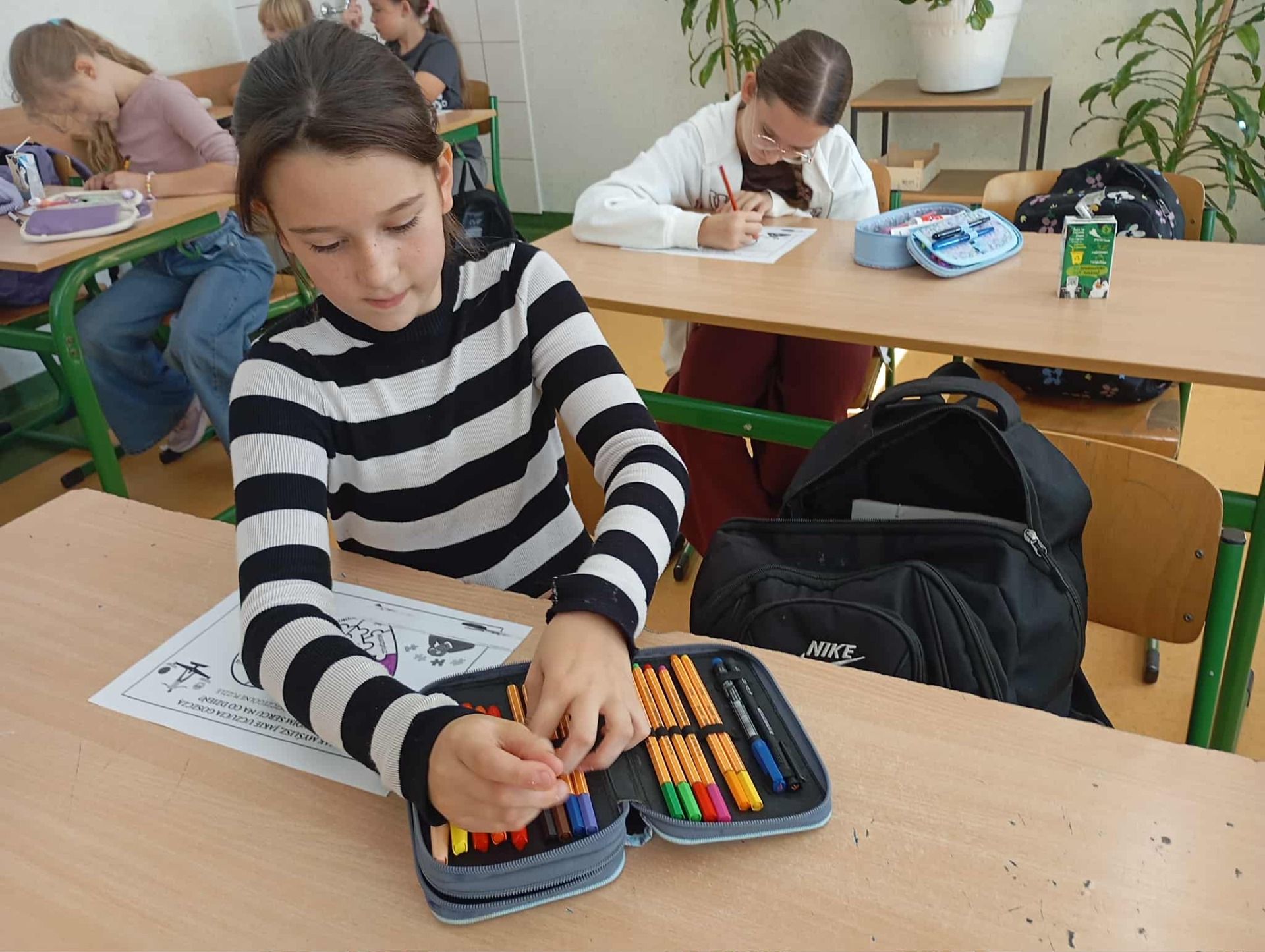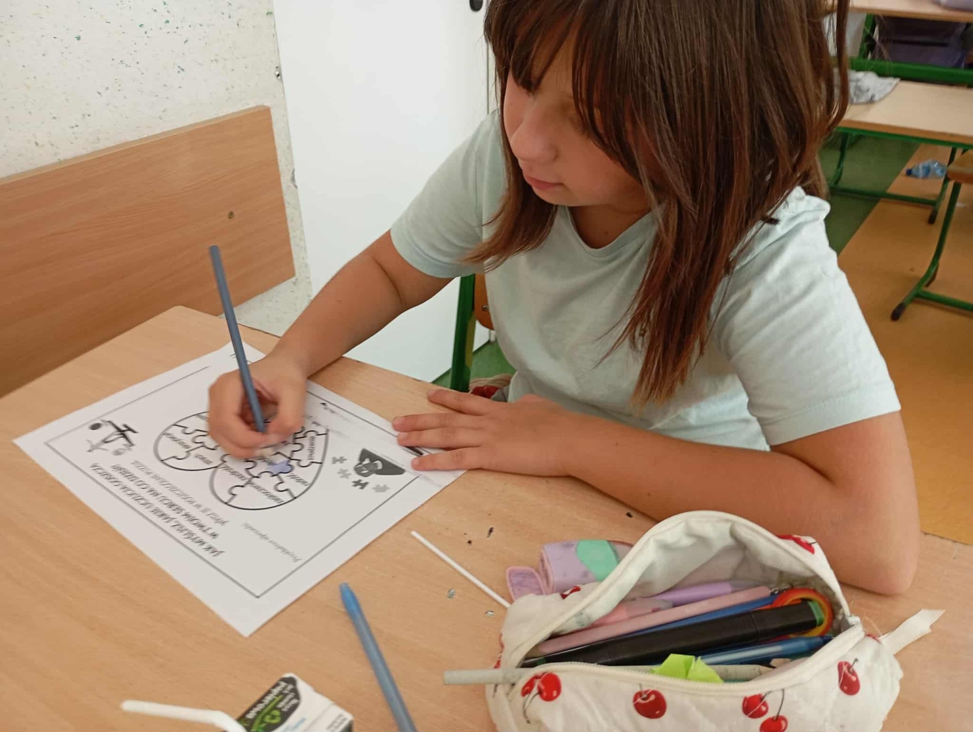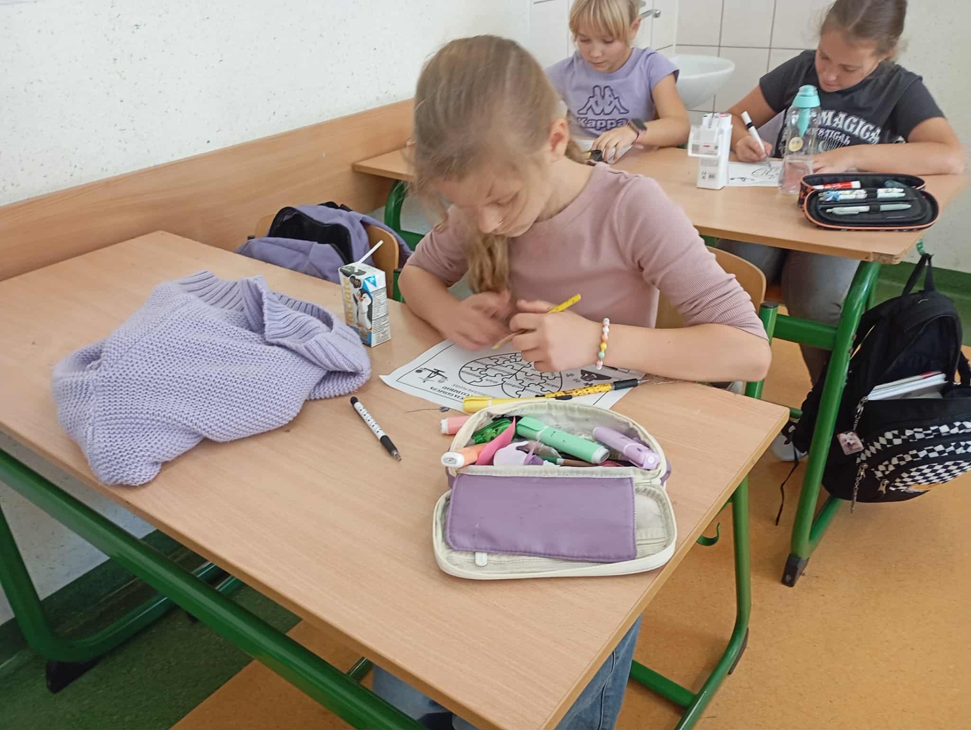 Podczas godziny wychowawczej uczniowie klasy 4b brali udział w zabawie jak powstaje plotka (zdjęcia nie są w stanie tego pokazać). Przeprowadzono eksperyment czy człowiek traci swoją wartość przez to jak wygląda. Przeprowadzona została pogadanka o empatii i szacunku.