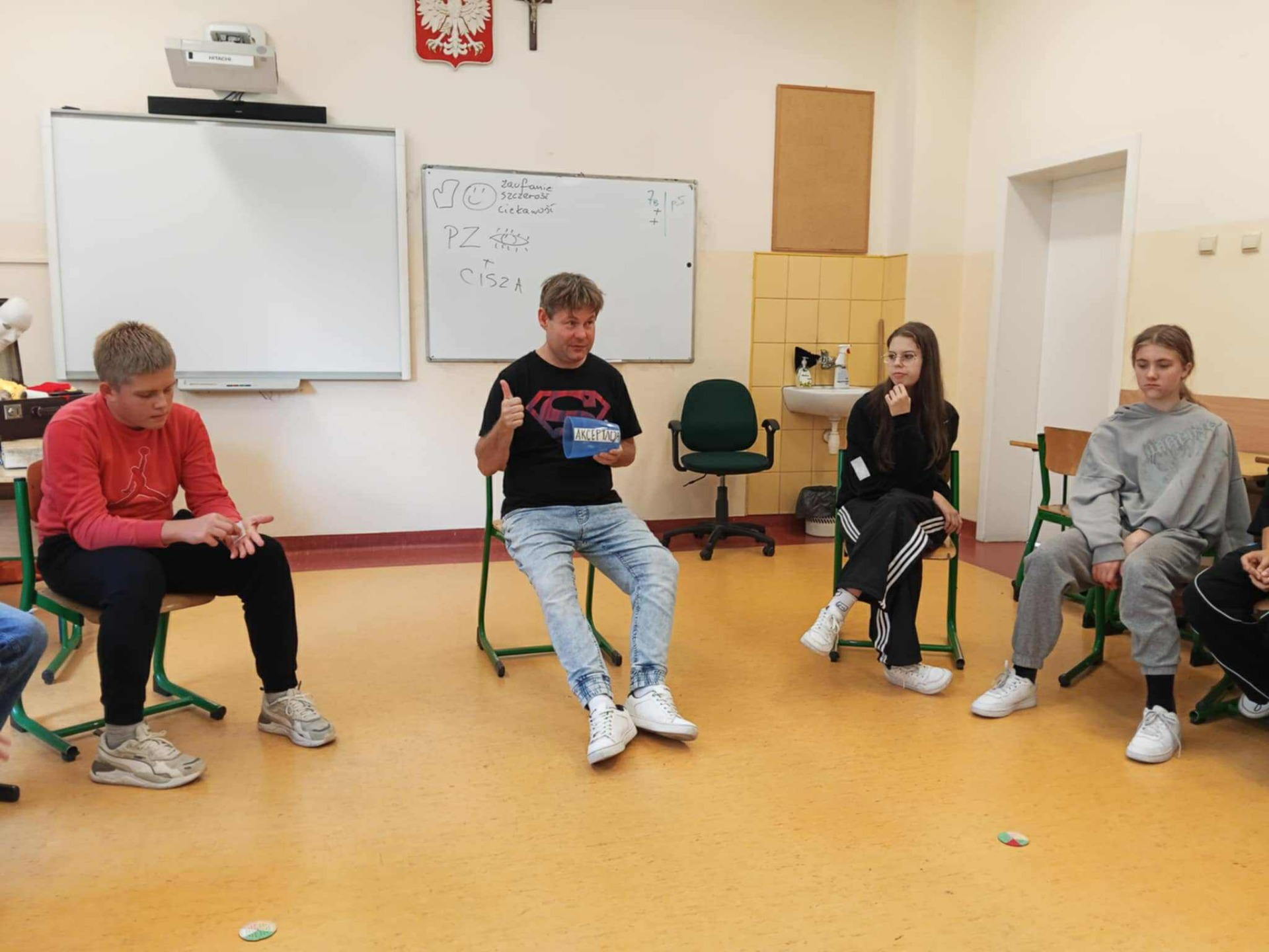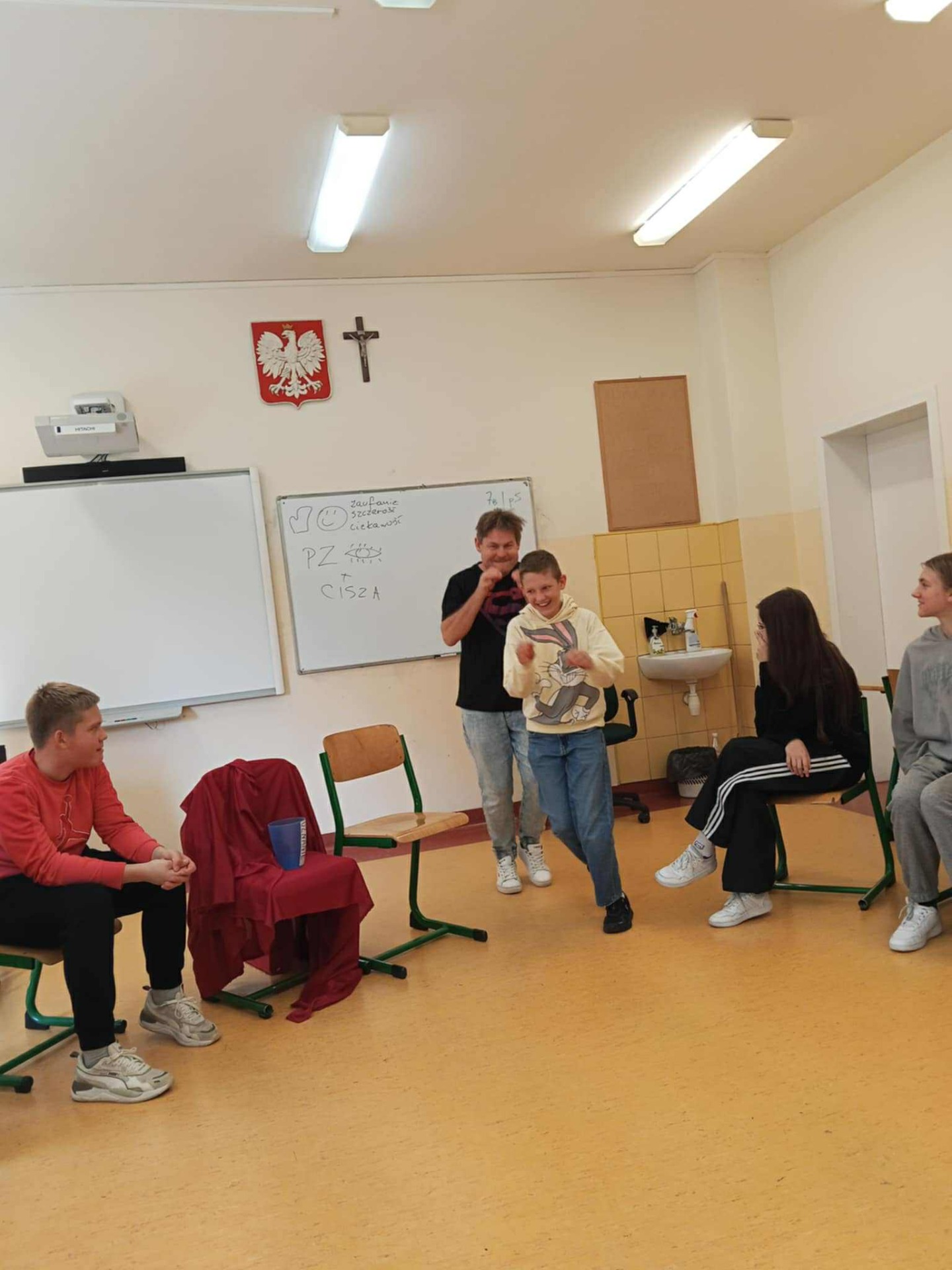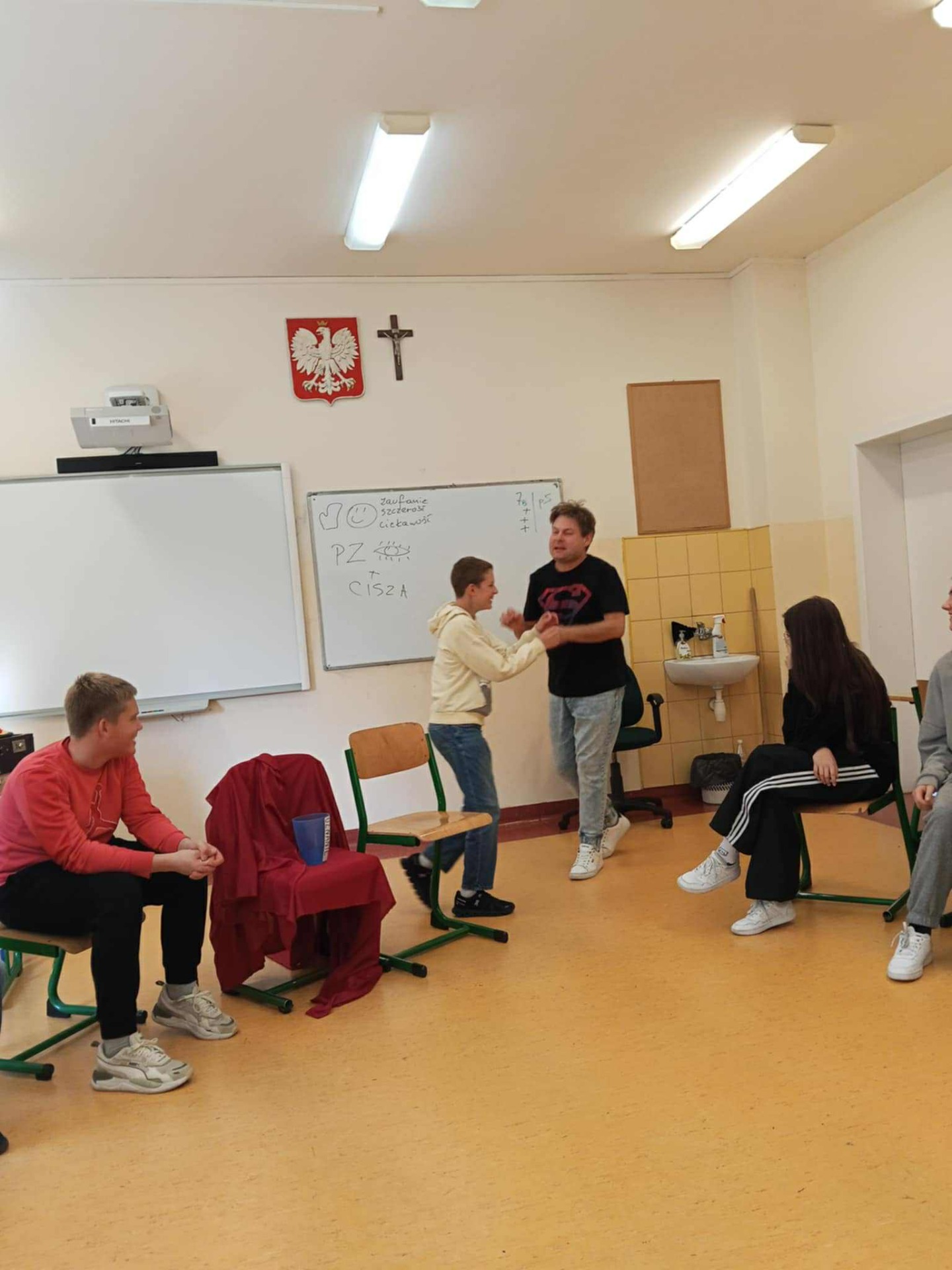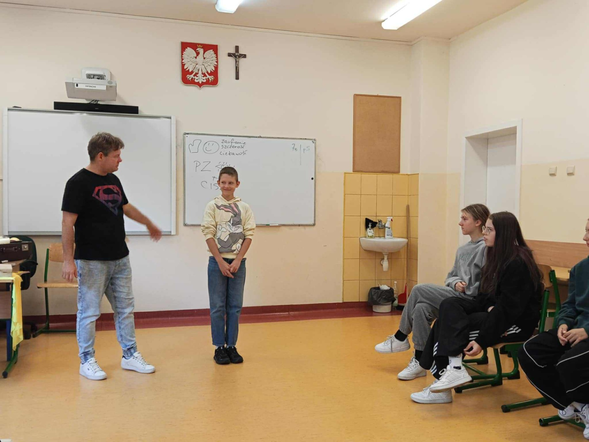 W ramach obchodów Tygodnia Przeciwdziałania Przemocy Rówieśniczej uczniowie klas 6 i 7 wzięli udział w warsztatach poświęconych budowaniu relacji, integracji oraz zasadom pozytywnej dyscypliny. Zajęcia poprowadził socjoterapeuta Sylwester Janek, który w ciekawy i angażujący sposób pomógł uczniom zrozumieć, jak ważne są wzajemny szacunek, empatia i dobra komunikacja w codziennym życiu szkolnym.