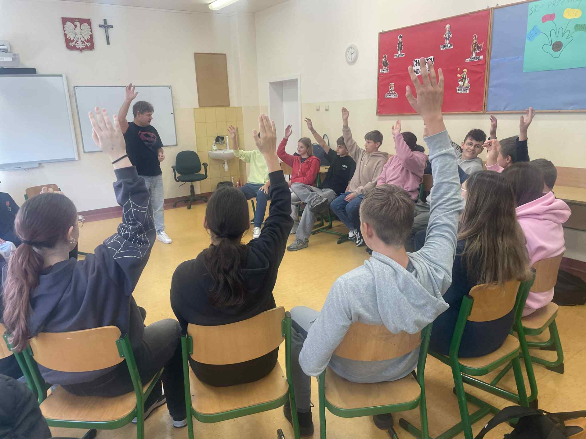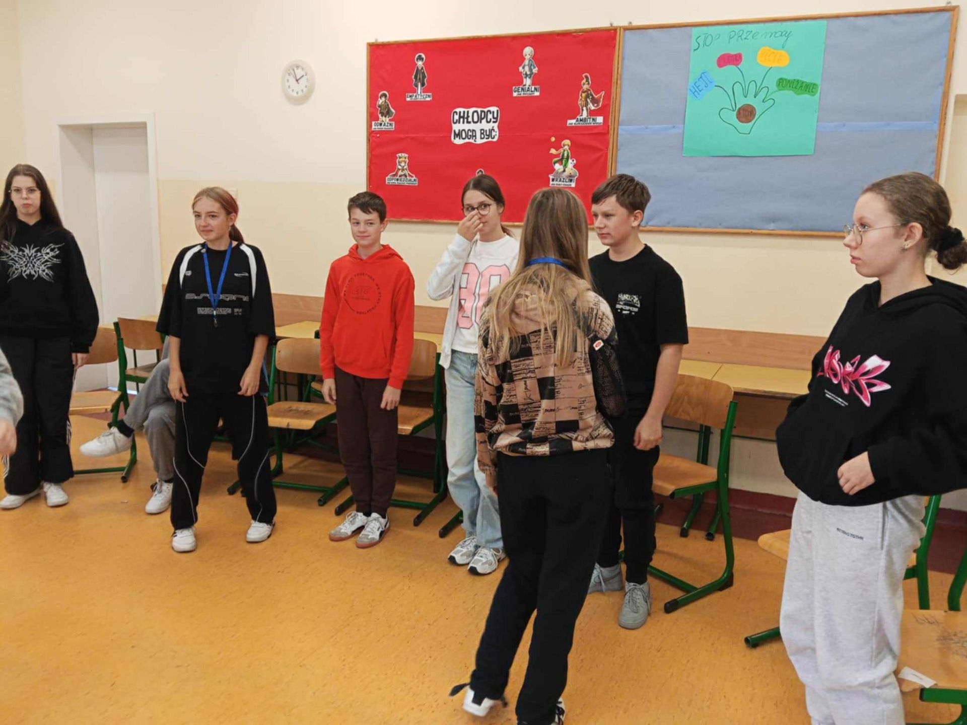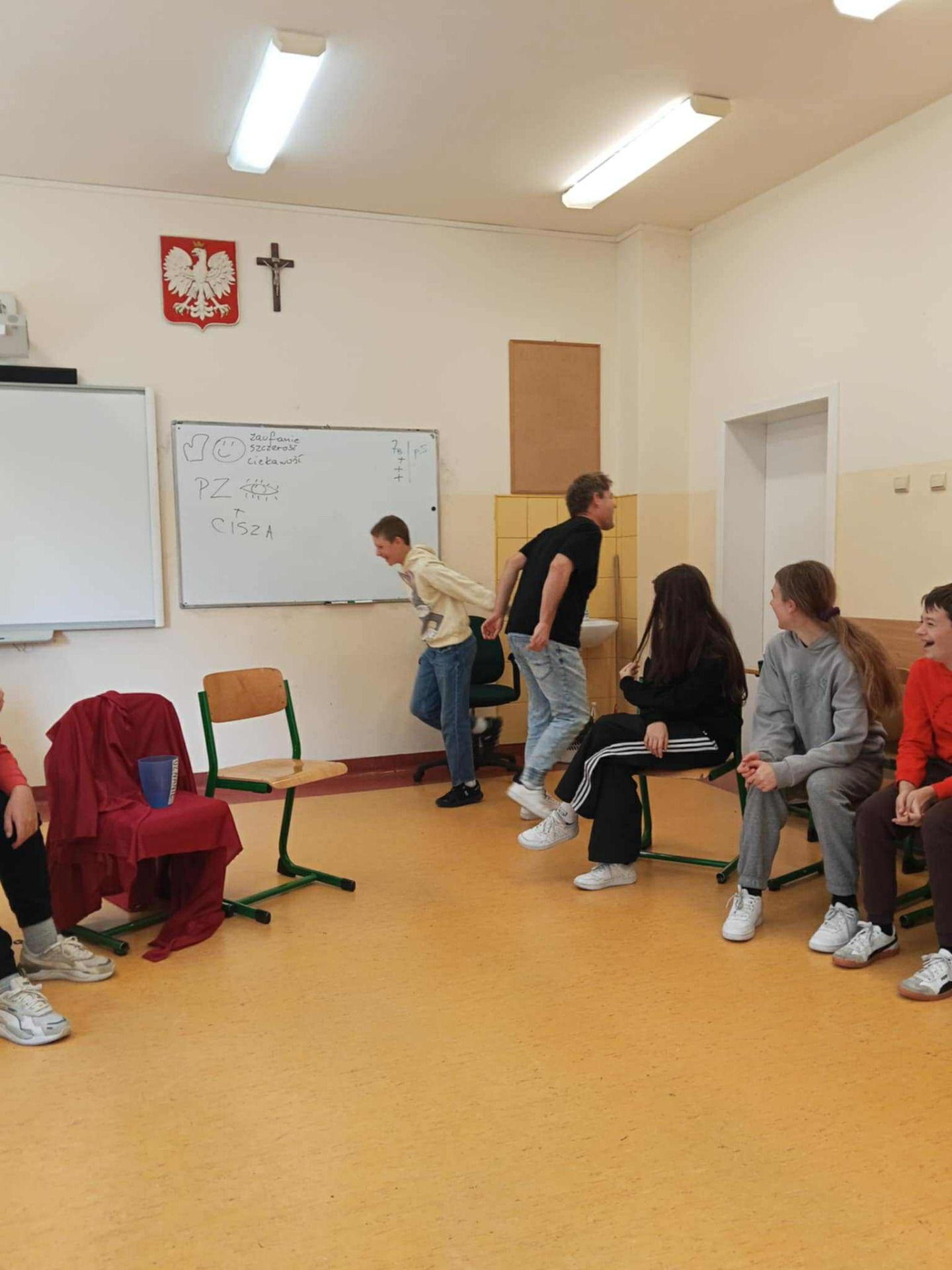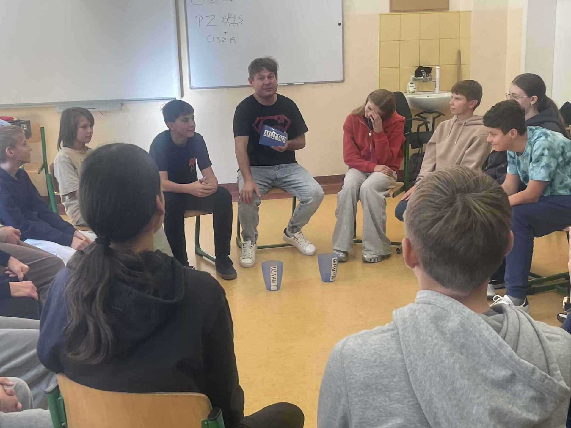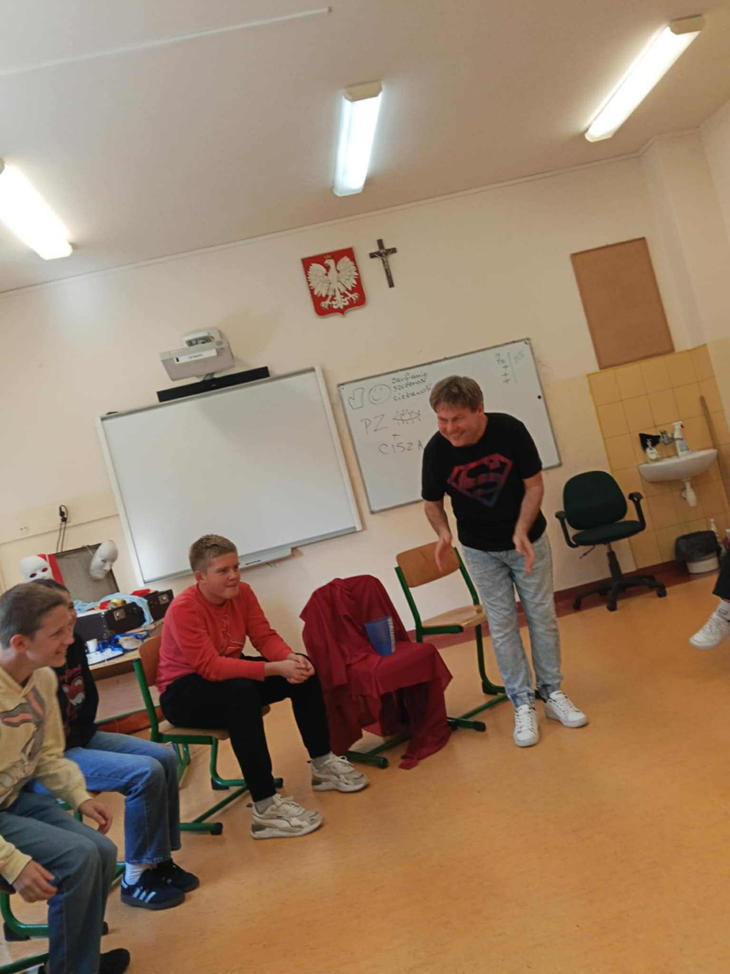 W ramach obchodów Tygodnia Przeciwdziałania Przemocy Rówieśniczej uczniowie klas 6 i 7 wzięli udział w warsztatach poświęconych budowaniu relacji, integracji oraz zasadom pozytywnej dyscypliny. Zajęcia poprowadził socjoterapeuta Sylwester Janek, który w ciekawy i angażujący sposób pomógł uczniom zrozumieć, jak ważne są wzajemny szacunek, empatia i dobra komunikacja w codziennym życiu szkolnym.