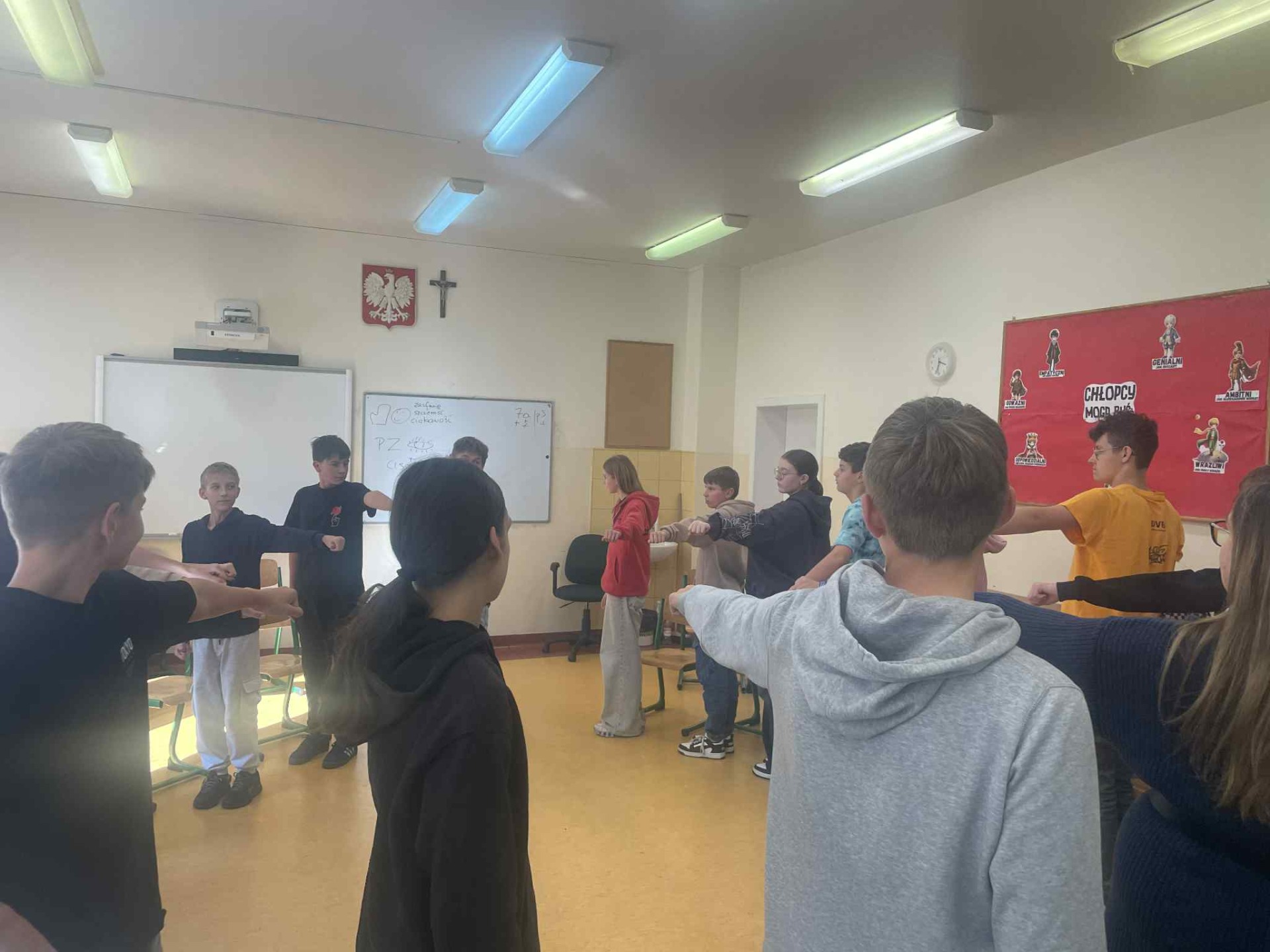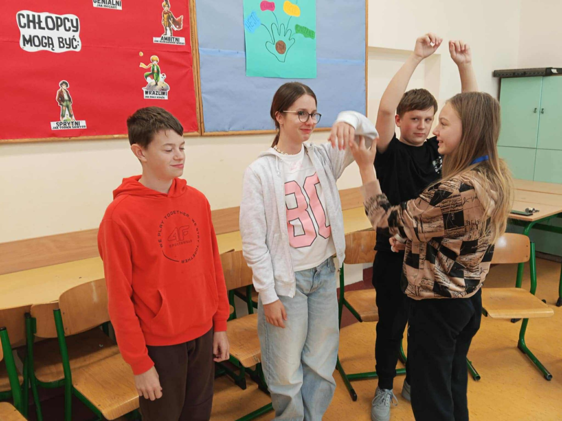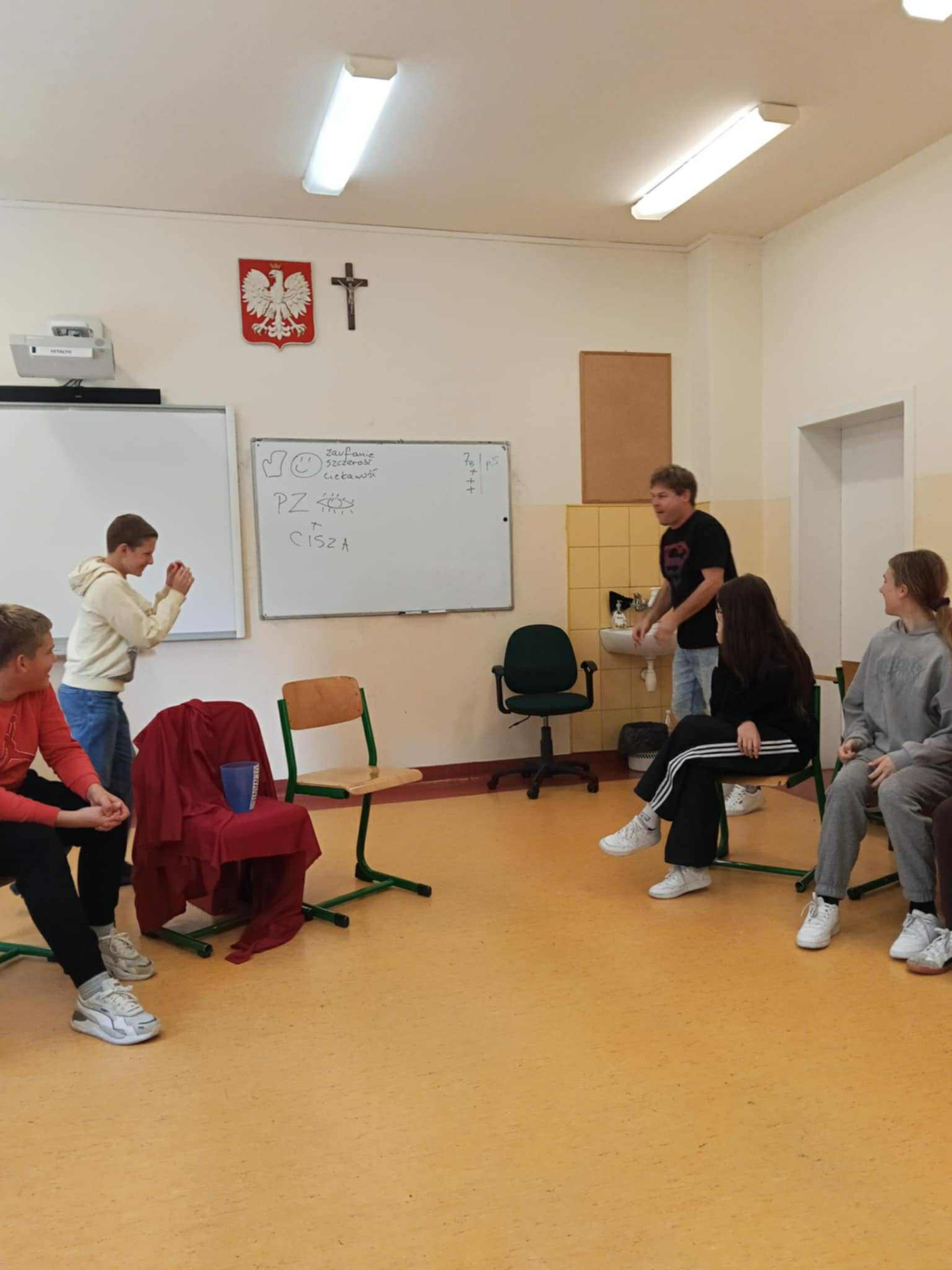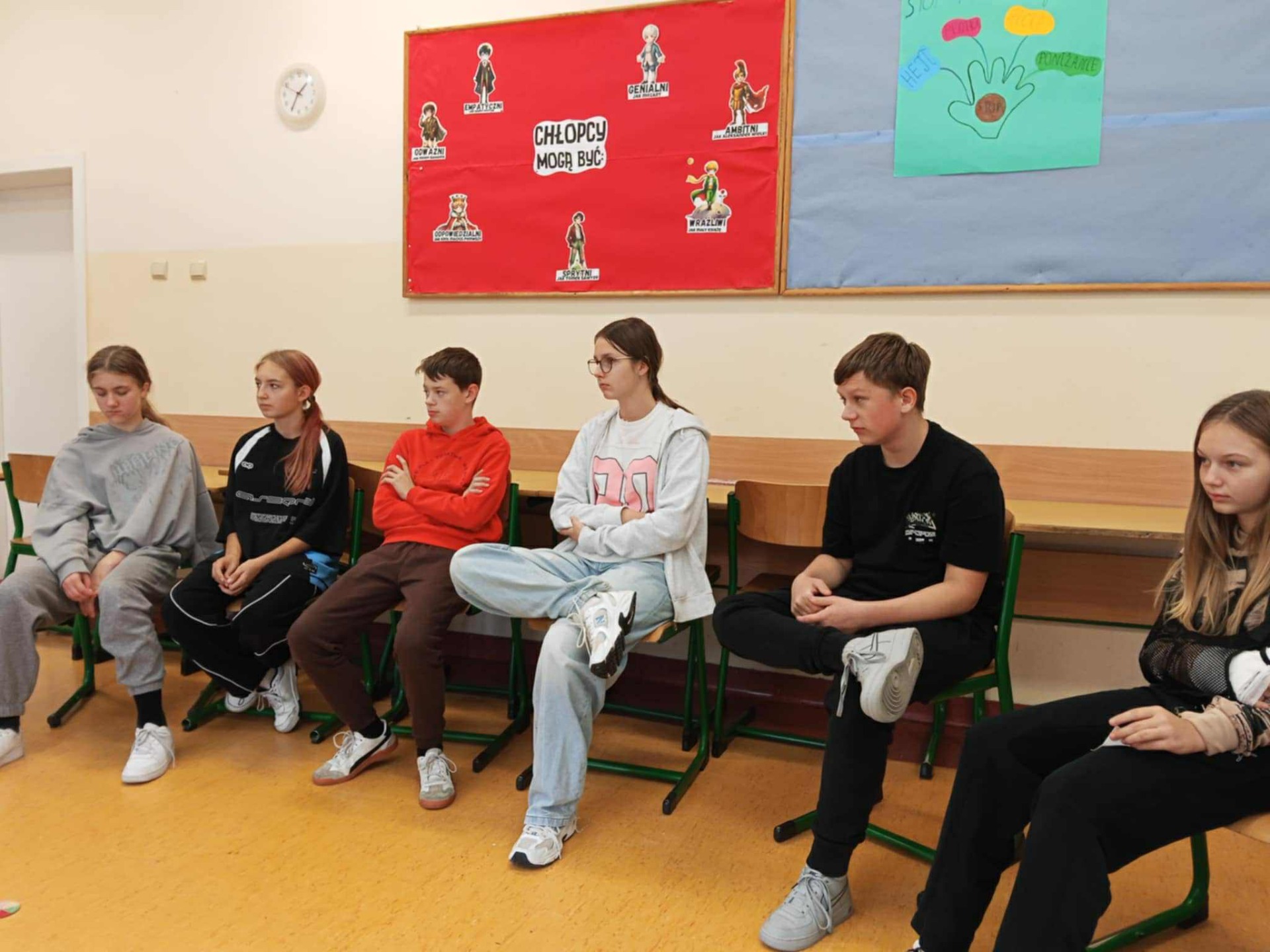 W ramach obchodów Tygodnia Przeciwdziałania Przemocy Rówieśniczej uczniowie klas 6 i 7 wzięli udział w warsztatach poświęconych budowaniu relacji, integracji oraz zasadom pozytywnej dyscypliny. Zajęcia poprowadził socjoterapeuta Sylwester Janek, który w ciekawy i angażujący sposób pomógł uczniom zrozumieć, jak ważne są wzajemny szacunek, empatia i dobra komunikacja w codziennym życiu szkolnym.