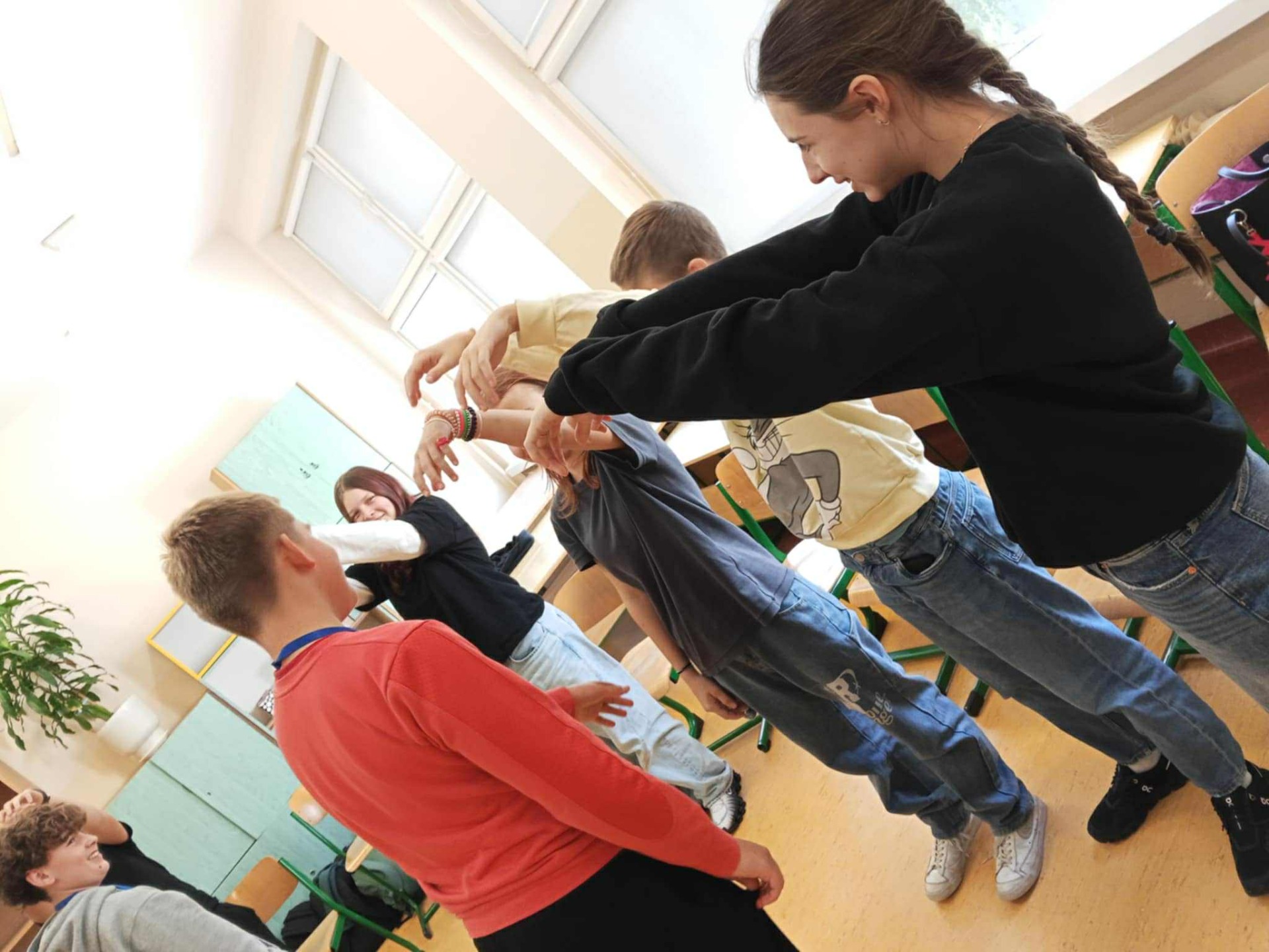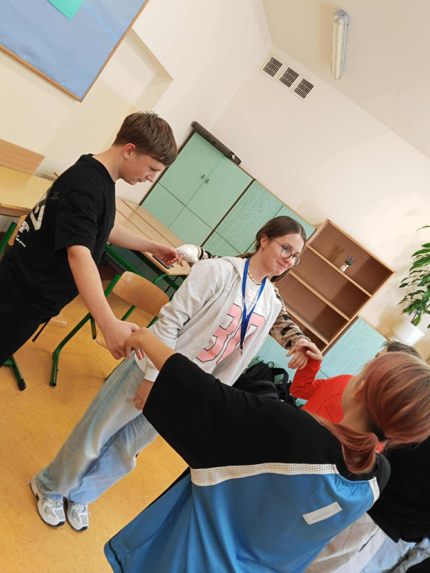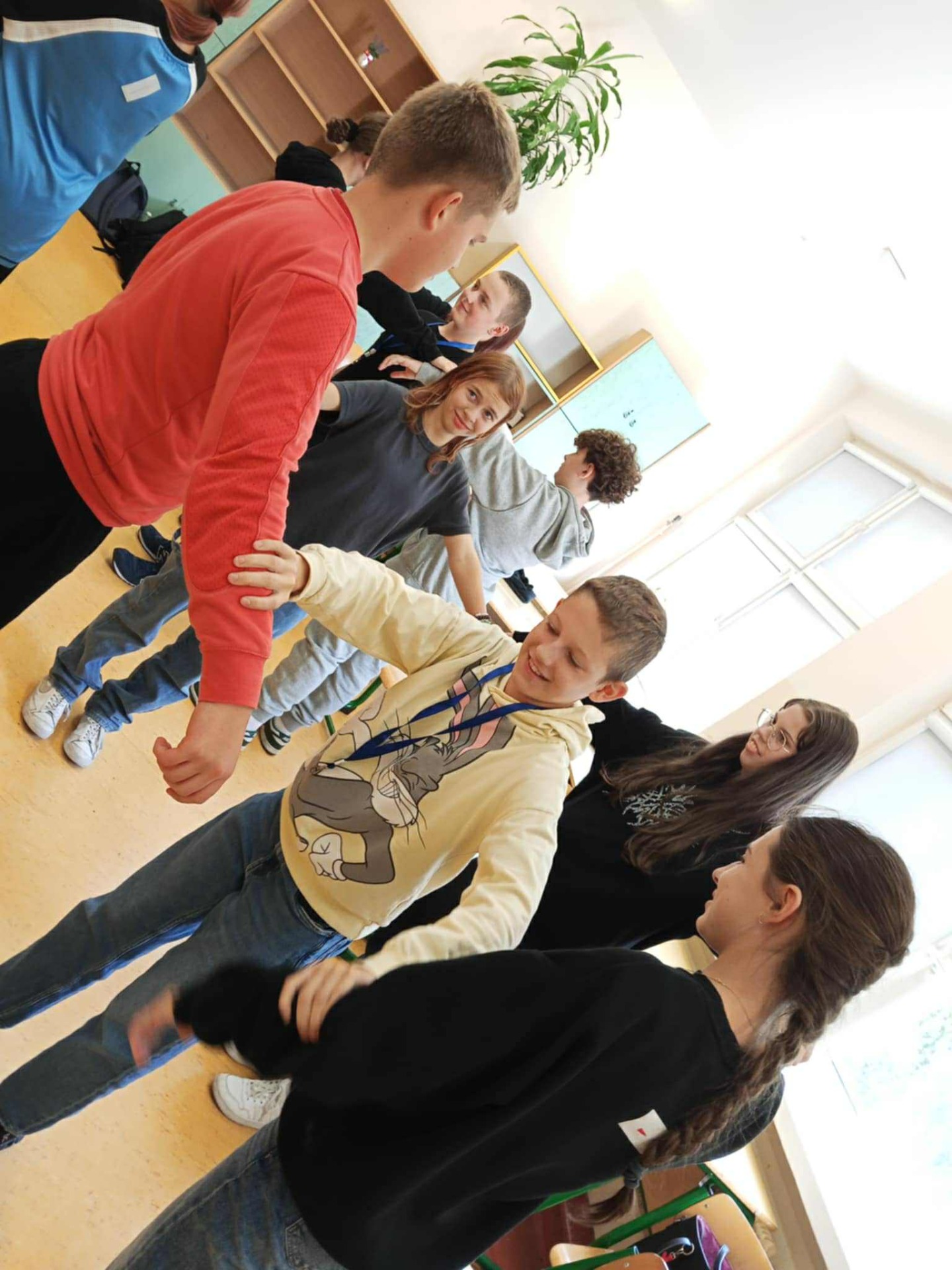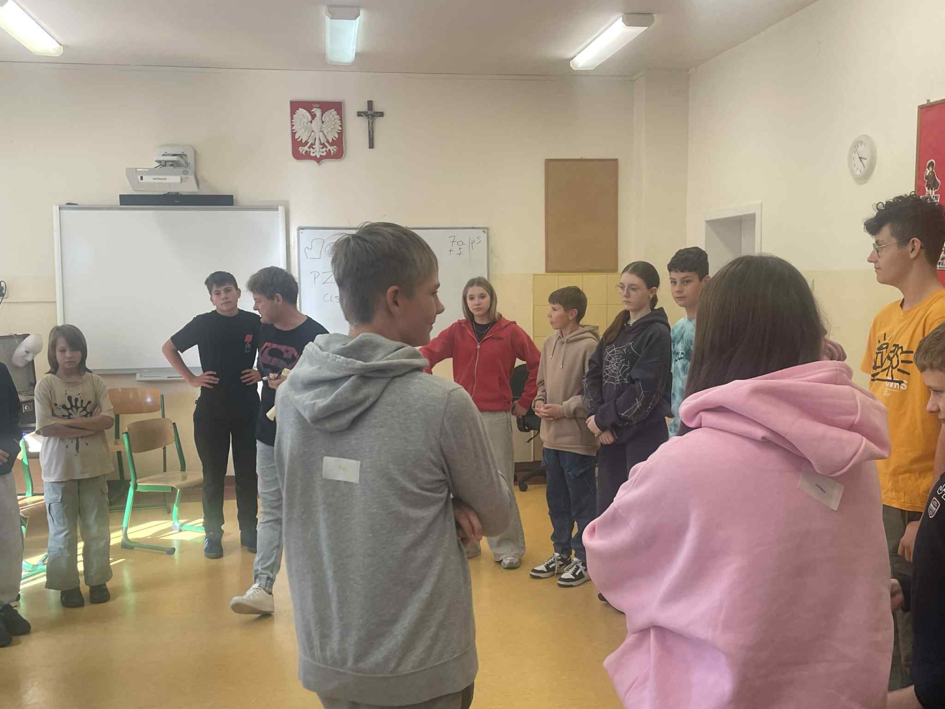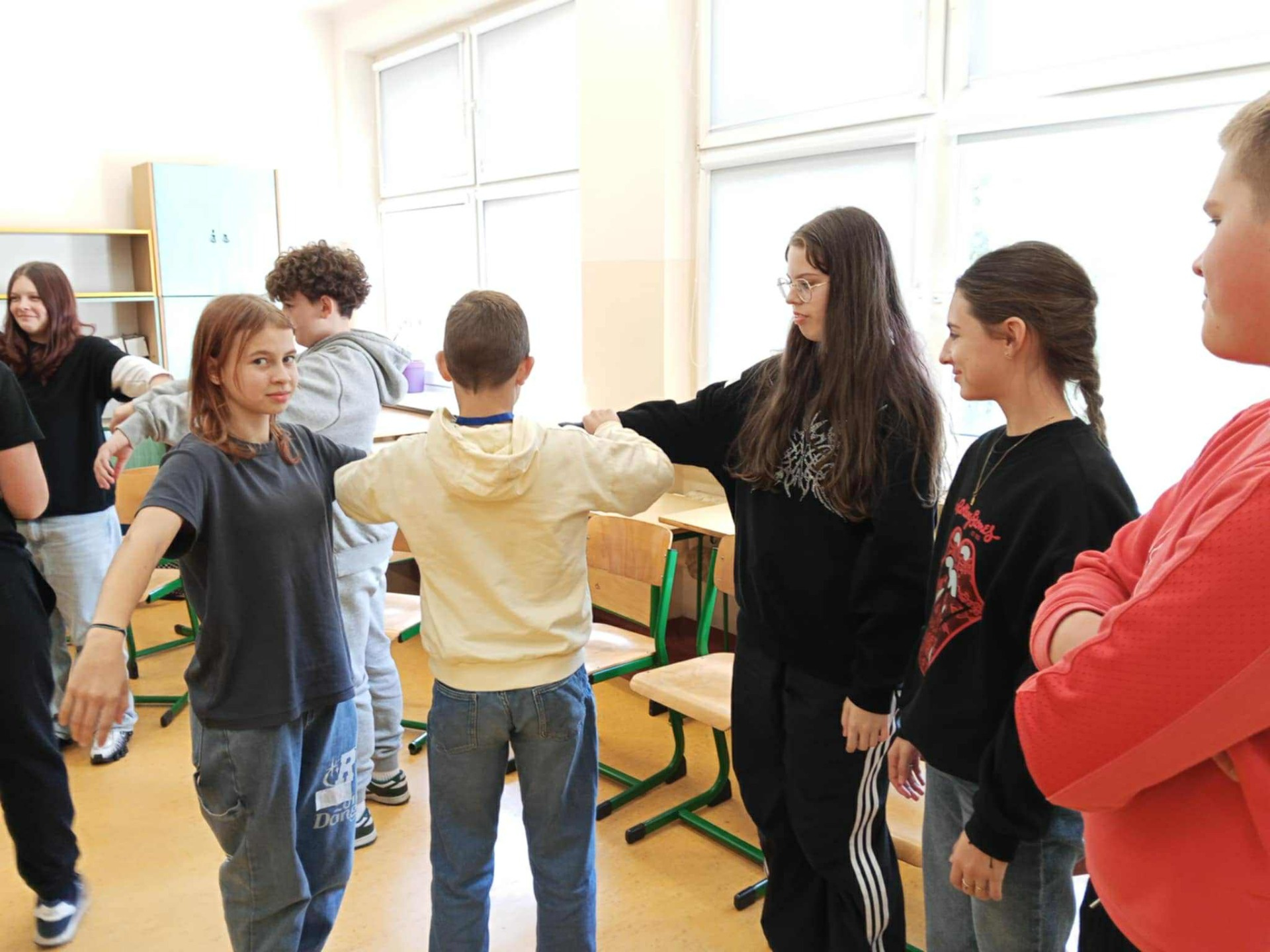 W ramach obchodów Tygodnia Przeciwdziałania Przemocy Rówieśniczej uczniowie klas 6 i 7 wzięli udział w warsztatach poświęconych budowaniu relacji, integracji oraz zasadom pozytywnej dyscypliny. Zajęcia poprowadził socjoterapeuta Sylwester Janek, który w ciekawy i angażujący sposób pomógł uczniom zrozumieć, jak ważne są wzajemny szacunek, empatia i dobra komunikacja w codziennym życiu szkolnym.