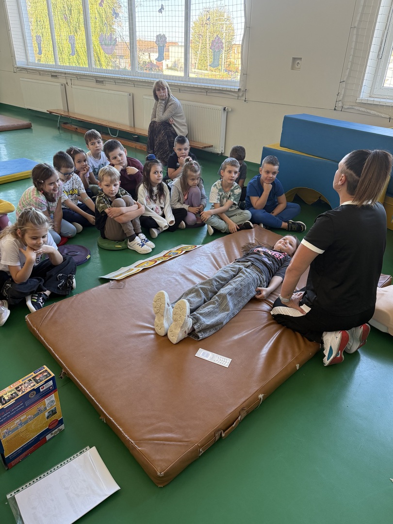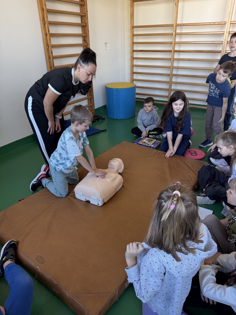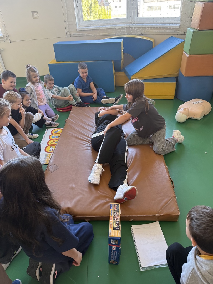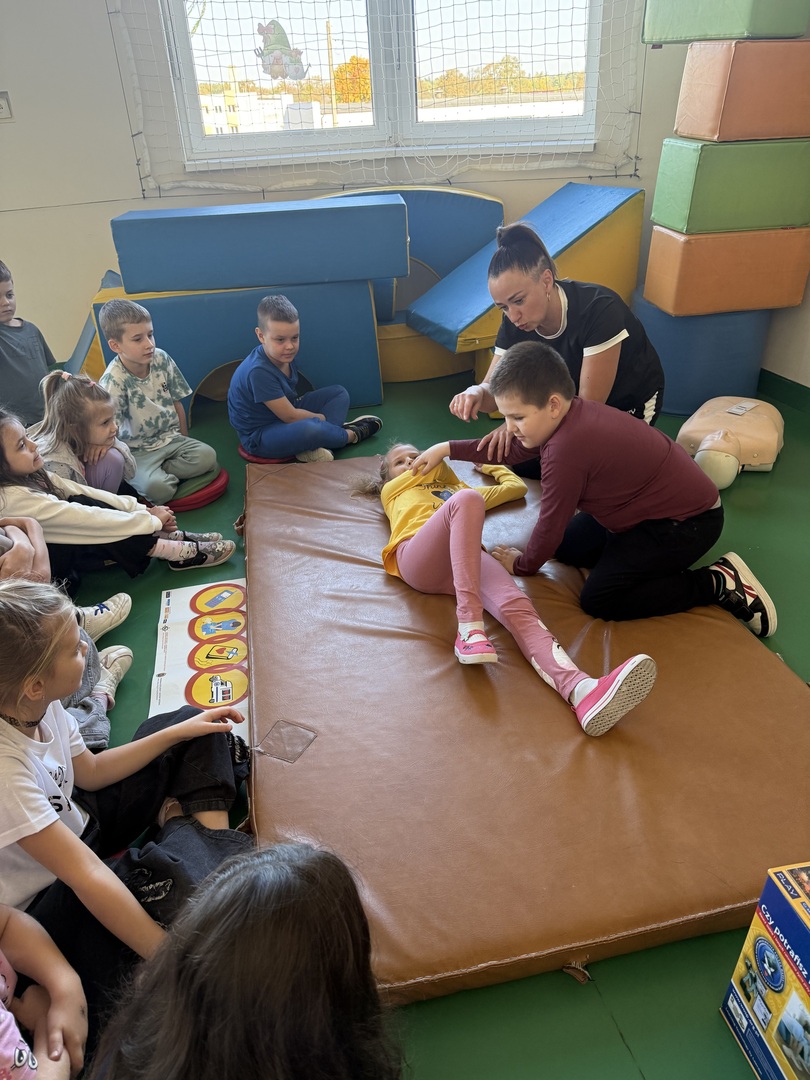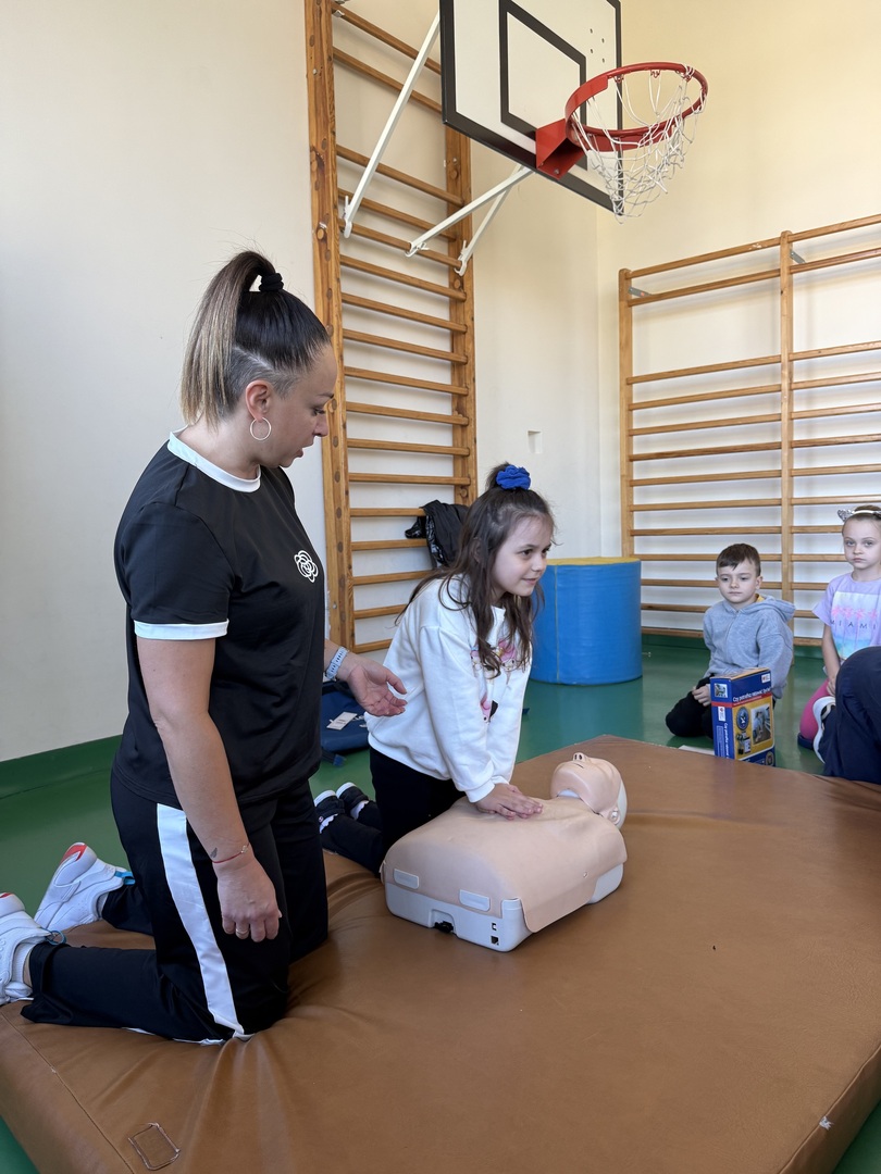 Dzieci uczyły się, jak wezwać pomoc 🚑, sprawdzić przytomność, a także jak zadbać o bezpieczeństwo własne i poszkodowanego.
