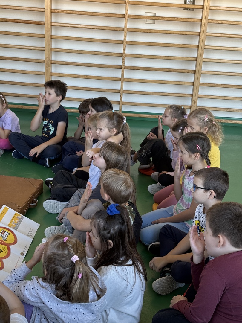 Spotkanie poprowadziła Pani Anna Woźniak-Ordoczyńska, mama naszej uczennicy Cecylii, która w ciekawy i praktyczny sposób przybliżyła dzieciom zasady udzielania pomocy w nagłych sytuacjach. 🩹⛑️