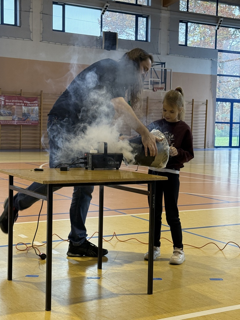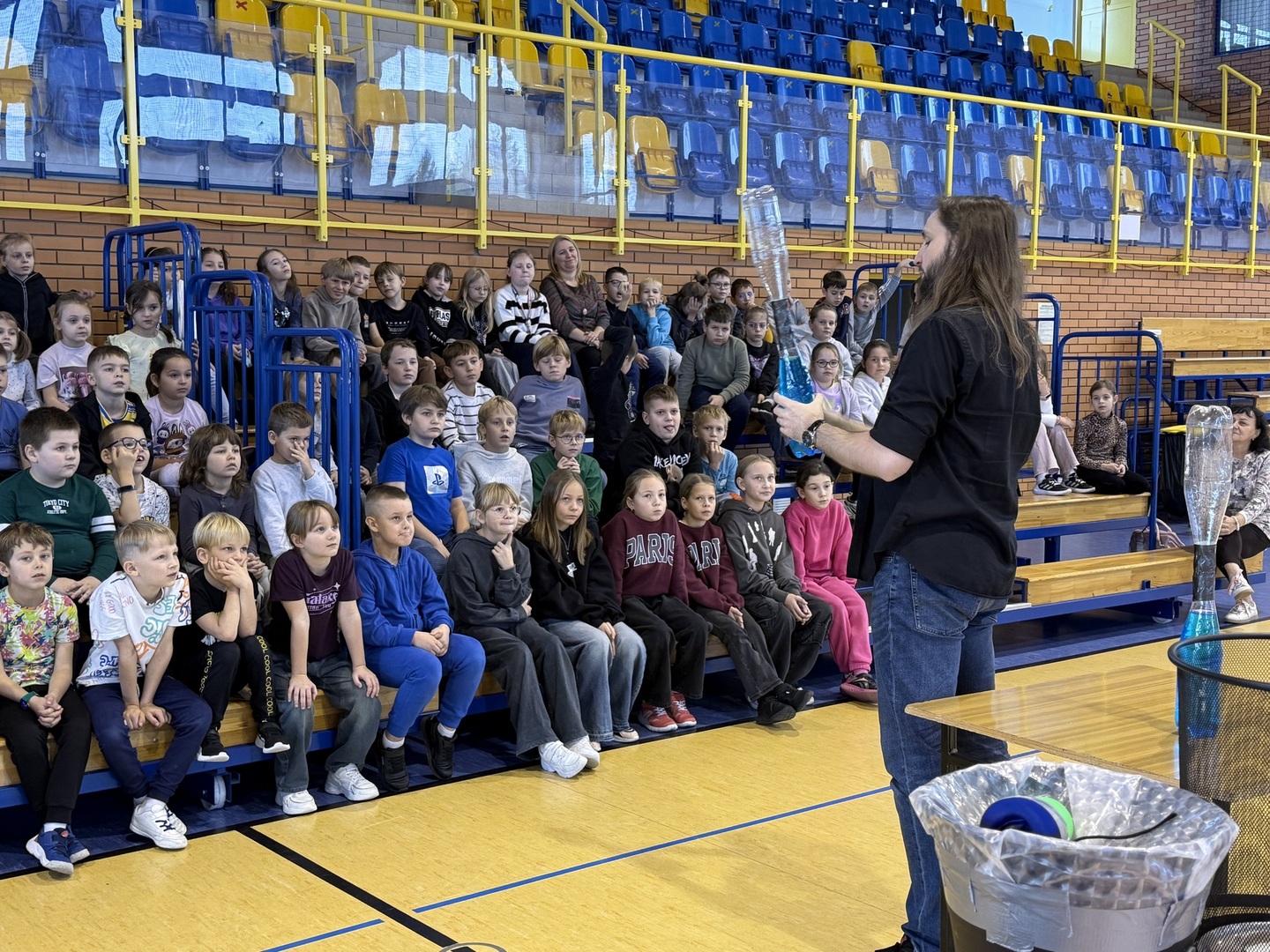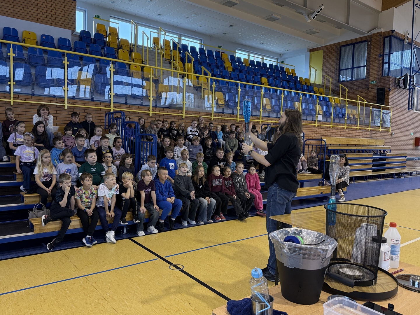 27 października wszyscy uczniowie naszej szkoły wzięli udział w pokazowej lekcji doświadczalnej 🧑🔬⚗️🥼🧪. Pan Mateusz z firmy Eduevent przygotował interesujący program doświadczeń z zakresu fizyki, chemii i biologii. Każde z przeprowadzonych doświadczeń zostało dokładnie i ciekawie wytłumaczone prawami fizyki i chemii. Uczniowie wykazali się ciekawością poznawczą oraz aktywnym zaangażowaniem w asystowaniu podczas zajęć. Zachwytom i radości z odkrywania otaczającego nas świata nie było końca 🙂🧑🔬