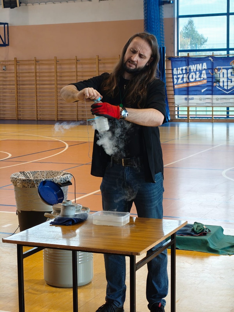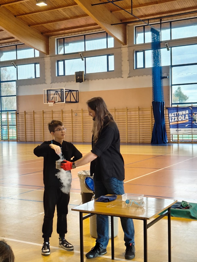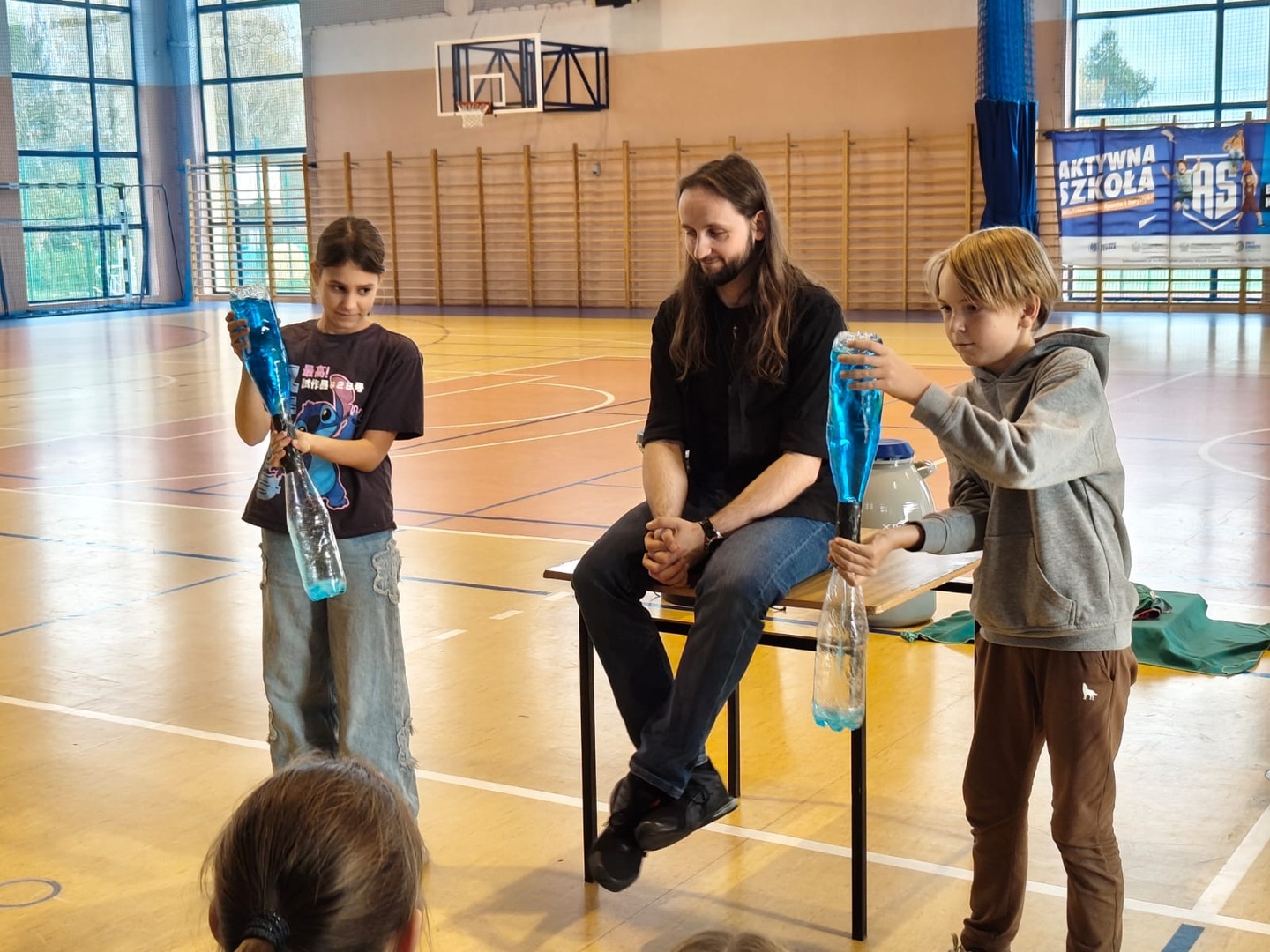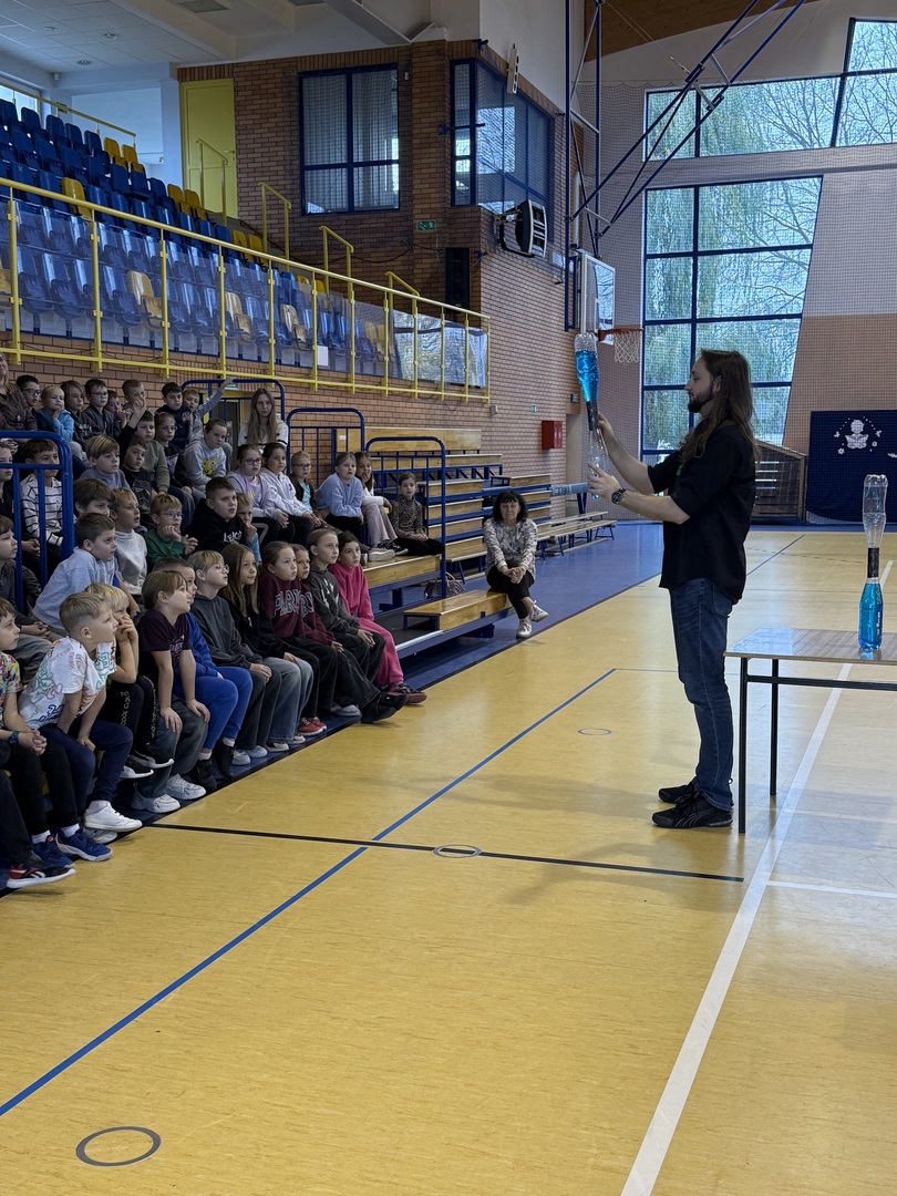 27 października wszyscy uczniowie naszej szkoły wzięli udział w pokazowej lekcji doświadczalnej 🧑🔬⚗️🥼🧪. Pan Mateusz z firmy Eduevent przygotował interesujący program doświadczeń z zakresu fizyki, chemii i biologii. Każde z przeprowadzonych doświadczeń zostało dokładnie i ciekawie wytłumaczone prawami fizyki i chemii. Uczniowie wykazali się ciekawością poznawczą oraz aktywnym zaangażowaniem w asystowaniu podczas zajęć. Zachwytom i radości z odkrywania otaczającego nas świata nie było końca 🙂🧑🔬